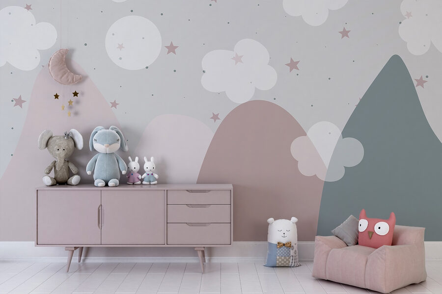 Alakítson át bármilyen teret álomszerű meneküléssé ezzel a bájos falfestménnyel, a “Tájkép felhőkkel és csillagokkal” cíművel. Képzeld el, ahogy a kicsik ezeket a lágy, pasztellszínű csúcsokat, bolyhos felhőket és csillogó csillagokat bámulják, miközben álomba szenderülnek. Olyan ez, mint egy meghívás egy szeszélyes világ felfedezésére közvetlenül a szobájukból! A gyengéd színek nyugalmat árasztanak, így tökéletes játékidőhöz vagy csendes pillanatokhoz. Képzeld el a mesemondást e varázslatos égbolt alatt – ez biztosan fantáziadús kalandokat indít el. Ráadásul ki ne szeretne egy olyan kilátást, amelytől úgy érzi, mintha a felhők között lustálkodna?