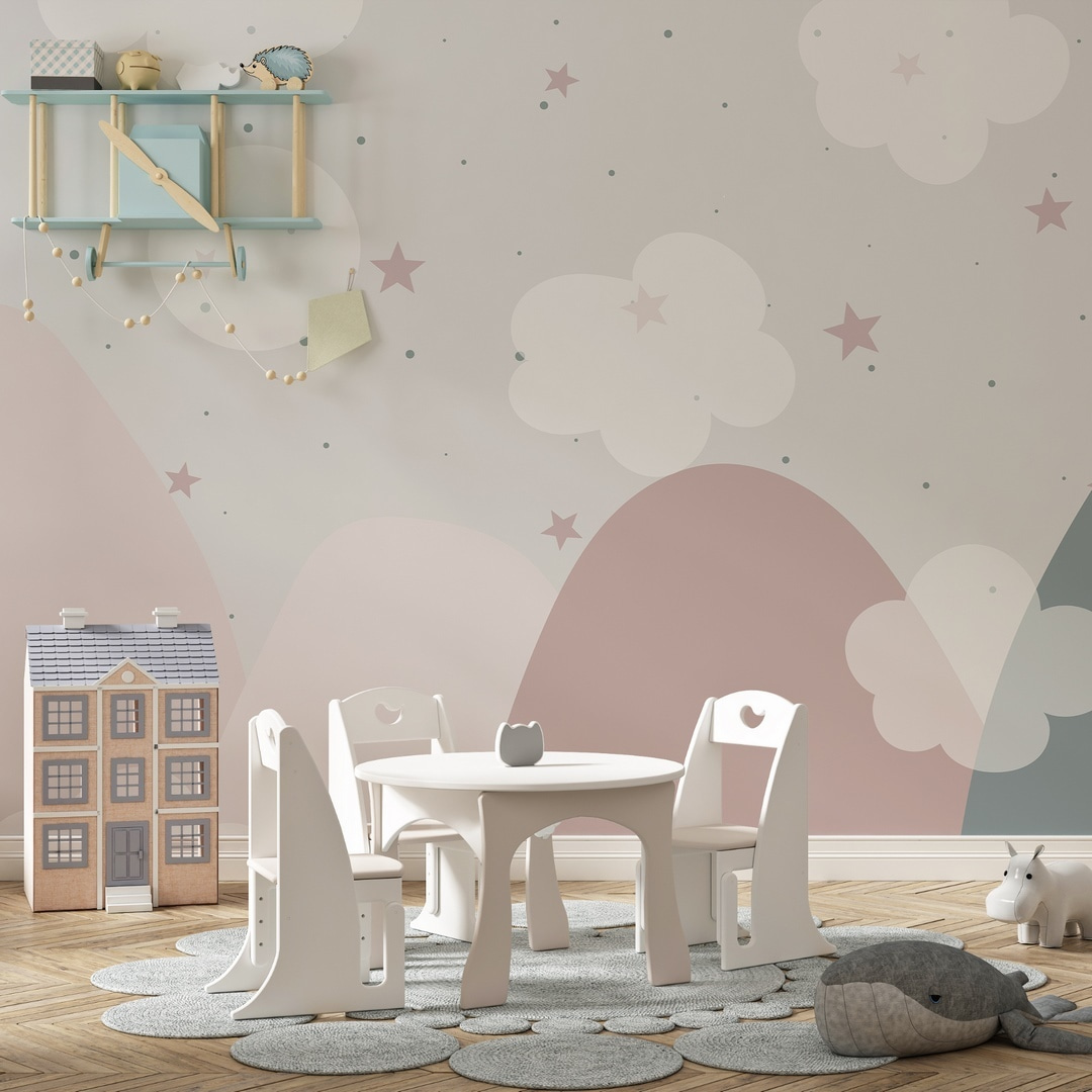 Alakítson át bármilyen teret álomszerű meneküléssé ezzel a bájos falfestménnyel, a “Tájkép felhőkkel és csillagokkal” cíművel. Képzeld el, ahogy a kicsik ezeket a lágy, pasztellszínű csúcsokat, bolyhos felhőket és csillogó csillagokat bámulják, miközben álomba szenderülnek. Olyan ez, mint egy meghívás egy szeszélyes világ felfedezésére közvetlenül a szobájukból! A gyengéd színek nyugalmat árasztanak, így tökéletes játékidőhöz vagy csendes pillanatokhoz. Képzeld el a mesemondást e varázslatos égbolt alatt – ez biztosan fantáziadús kalandokat indít el. Ráadásul ki ne szeretne egy olyan kilátást, amelytől úgy érzi, mintha a felhők között lustálkodna?