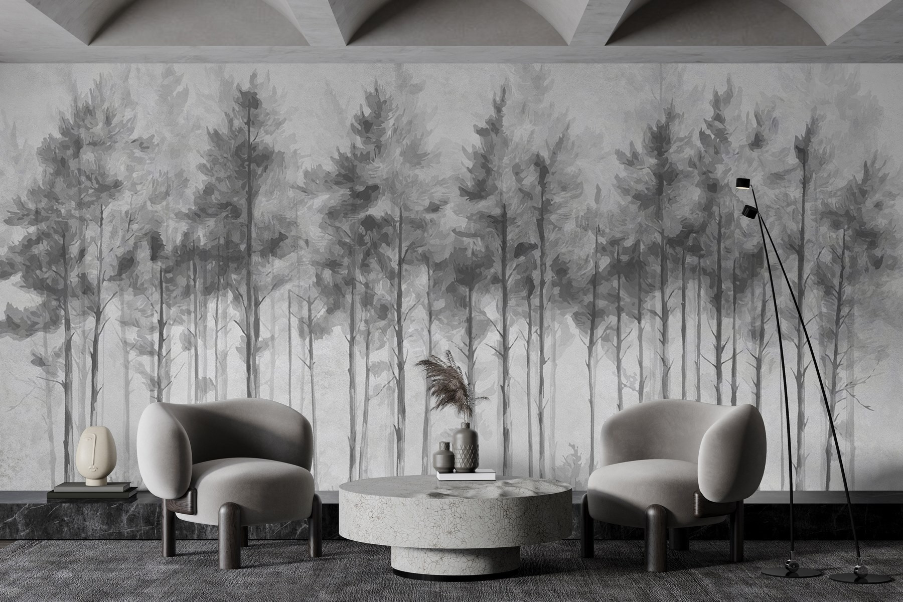 Képzelje el, hogy minden alkalommal, amikor belép a szobájába, egy nyugodt erdőbe lép. Ez a “Fák csoportja egy erdőben” című falfestmény megragadja ezt az álmodozó hangulatot, a szürkék lágy palettáját elegáns fák sziluettjeivel ötvözve. Olyan, mintha a természet szelíd suttogása lenne, amely nyugalomra és otthonosságra hív. Tökéletes a nappaliba vagy az olvasósarokba, és talán arra inspirál, hogy egy jó könyvvel kucorodj össze – vagy talán megtervezd azt a túrát, amiről már régóta álmodozol. Ráadásul ki ne szeretne egy olyan falfestményt, amitől a falai olyan érzést keltenek, mint egy békés menekülés? A természet szerelmesei örüljenek – ez a falfestmény tökéletesen megfelel!