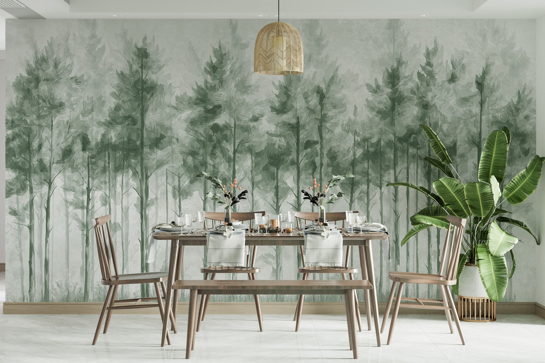Alakítson át egy sima falat egy nyugodt meneküléssé ezzel a “Fák csoportja egy erdőben” falfestménnyel. Képzeld el, hogy egy szelíd erdőbe lépsz, ahol a lágy zöldek és a finom köd arra hívnak, hogy vegyél egy mély lélegzetet és lazíts. Olyan, mintha a természet egy szeletét hoznád be a házba – bogarak és sáros csizma nélkül! Ez a falfestmény tökéletes egy hangulatos nappali sarokba vagy egy nyugodt hálószobába, és nyugalmat áraszt. Képzelje el, ahogy a fákat bámulva kávét kortyolgat, és hagyja, hogy gondolatai békés erdei ösvényekre kalandozzanak. Egy kis természet csodákra képes a lélekkel!