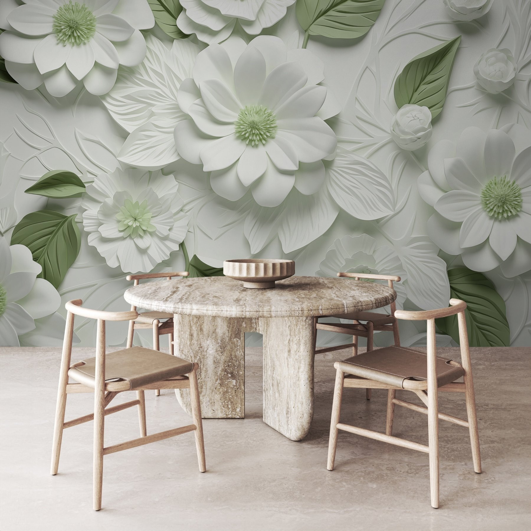 Bármely szobát nyugodt oázissá varázsolhatsz ezzel a lenyűgöző falfestménnyel, amely finom fehér és zöld virágokat ábrázol. Olyan, mintha egy kertet hoznál be a lakásba, csak a bosszantó bogarak nélkül. Képzelje csak el, ahogy egy napsütötte sarokban kávézik, körülvéve a soha el nem hervadó virágokkal. A bonyolult minták az eleganciát egy csipetnyi szeszélyességgel vegyítik, így minden pillantás egy mini menekülésnek tűnik. Tökéletes az üres falra, amely egy kis szeretetről suttog, vagy akár egy akcentus, hogy feldobja a dolgokat. A természet szépsége otthon, és nem kell hozzá zöld hüvelykujj – ki ne szeretné ezt?