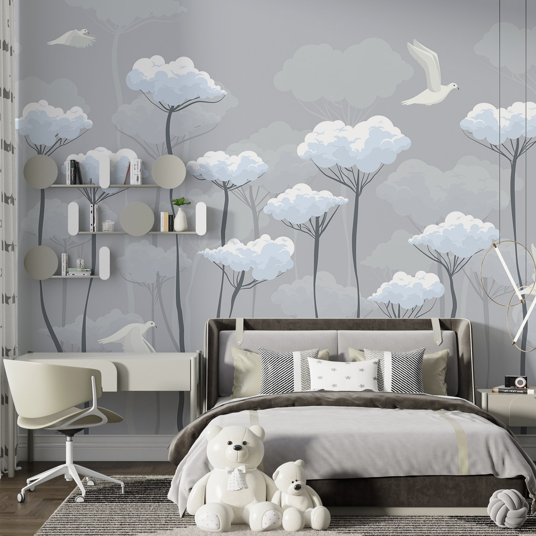 Képzelje el, hogy belép egy olyan szobába, ahol lágy felhők csókolják az eget, és madarak siklanak kecsesen a levegőben. Ez a lenyűgöző falfestmény, a “Felhőkön repülő madarak” egy hétköznapi teret álomszerű meneküléssé varázsol. Képzelje el: nyugodt reggeli kávézás, természetes fényben sütkérezve, miközben ezek az elegáns madarak a béke és a nyugalom érzését idézik. A szürke és a fehér szelíd árnyalatai friss, légies hangulatot teremtenek – tökéletes a nappaliba vagy a hangulatos olvasósarokba. Olyan, mintha az égbolt egy szelete lenne a falon! Ráadásul ki ne szeretne egy kis emlékeztetőt a természetről a belső térben? Könnyen felszerelhető, és öröm gyönyörködni benne, olyan szeszélyes hangulatot kölcsönöz, amely megcsiklandozza a szívet.