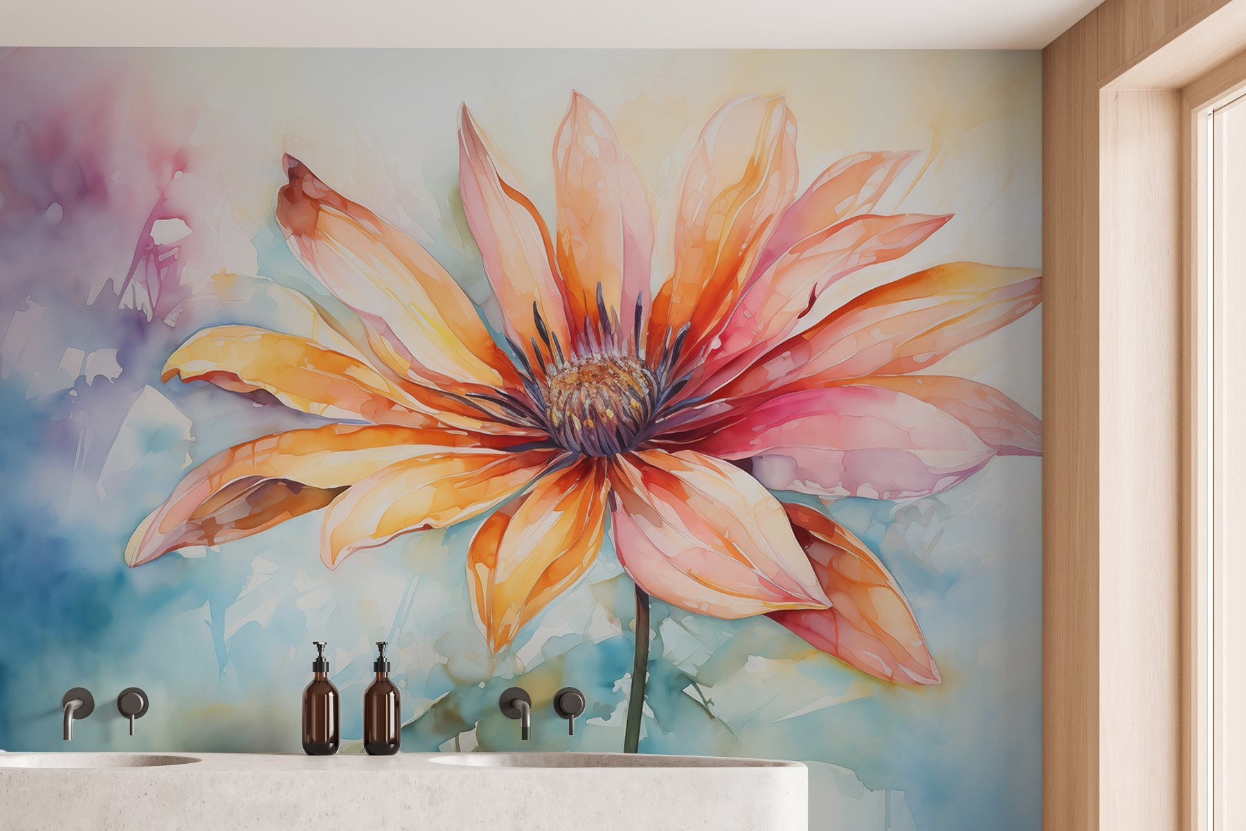 Dobja fel bármelyik teret ezzel a lenyűgöző virágos falfestménnyel. Élénk színei és álmodozó stílusa a természetet hozza be a belső térbe, tökéletes mindenkinek, aki úgy érzi, hogy egy kis életet szeretne vinni a falára. Képzelje el, ahogy reggel kávét szürcsölget, a napfény beáramlik, és ez a gyönyörű virág kukucskál Önre. Majdnem olyan, mintha egy kis kert lenne az otthonodban, az öntözőkanna nélkül. Ráadásul ki ne szeretné lenyűgözni a barátait egy ilyen egyedi dekorációval? Ez a falfestmény nem csak művészet; ez egy élmény. Adj a falaknak egy kis szeretetet!
