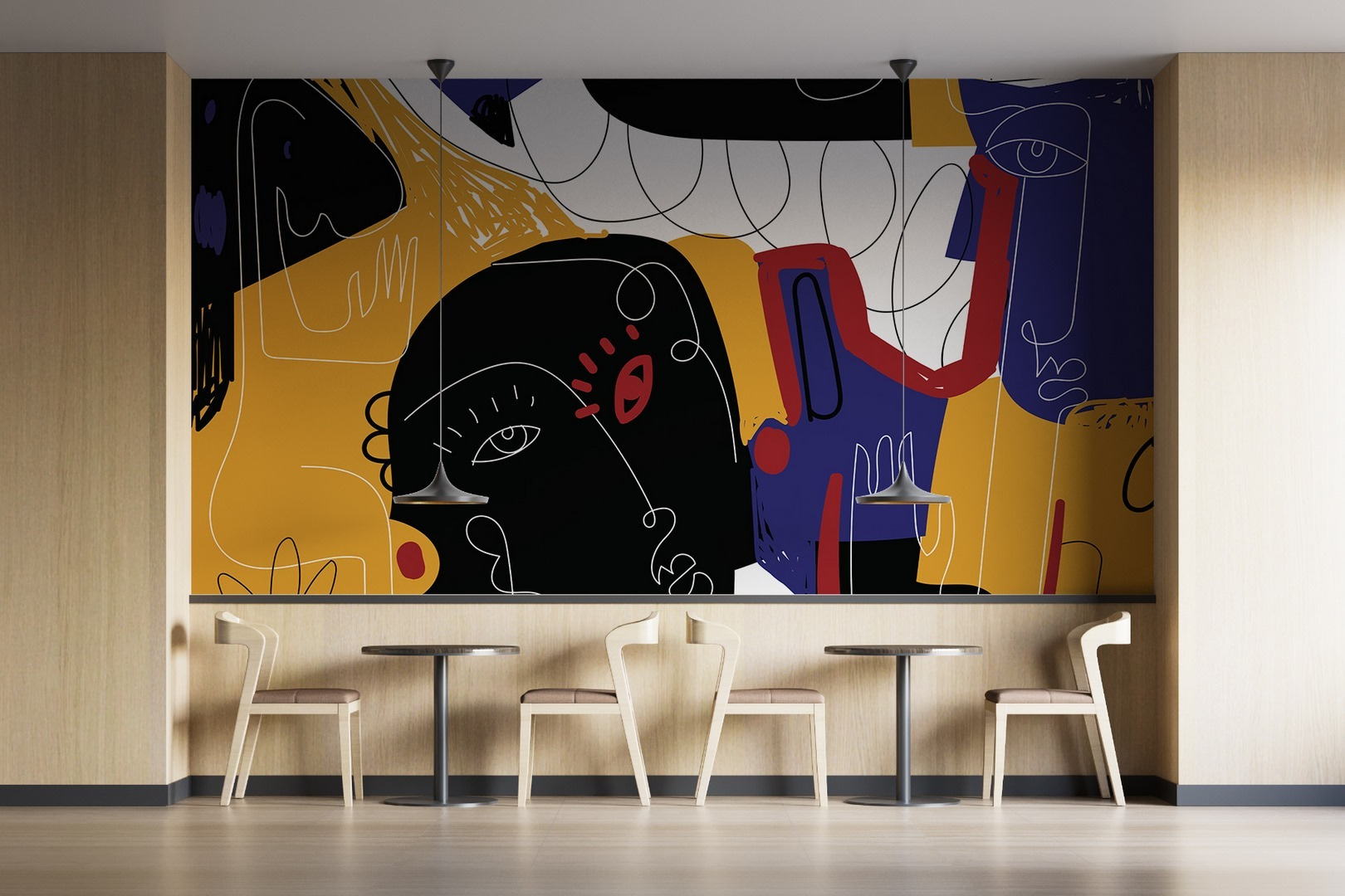 Dobja fel bármelyik falat ezzel a lenyűgöző falfestménnyel, amely színes művészeti alkotásokat mutat be érdekes fekete és kék arcokkal. Képzelje el, hogy belép egy olyan szobába, ahol minden egyes pillantás egy új érzelmet vagy történetet tár fel, amely arra vár, hogy elmesélje. Olyan, mint egy beszélgetésindító, de csevegés helyett festékkel – tökéletes a következő összejövetel kínos csendjére. A merész színek és a furcsa vonalak kombinációja életet lehel az unalmas terekbe, így nehéz nem mosolyogni minden alkalommal, amikor arra jársz. Legyen szó egy hangulatos nappaliról vagy egy vibráló kávézóról, ez a falfestmény energiát és kreativitást sugároz. Ez nem csak dekoráció; ez egy élmény!