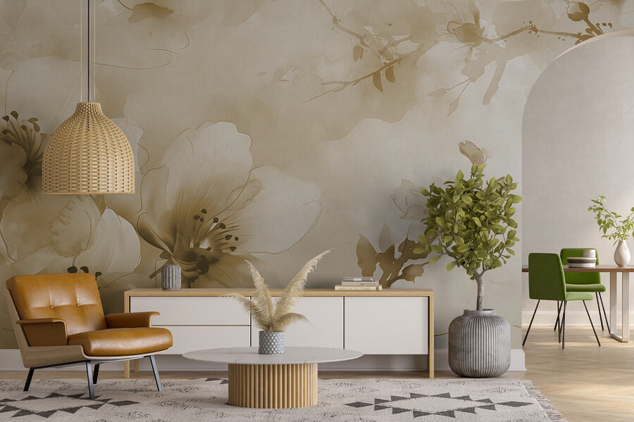 Alakítsa át terét egy álomszerű meneküléssé ezzel a lenyűgöző falfestménnyel, a “Finom virágokkal lágy árnyalatokban”. Képzelje el, hogy egy nyugodt japán kertbe lép, valahányszor belép a szobába. A gyengéd virágminták lágy ölelésbe burkolják Önt, nyugtató hangulatot teremtve, amely tökéletes egy csendes délutánhoz vagy egy meghitt éjszakához.