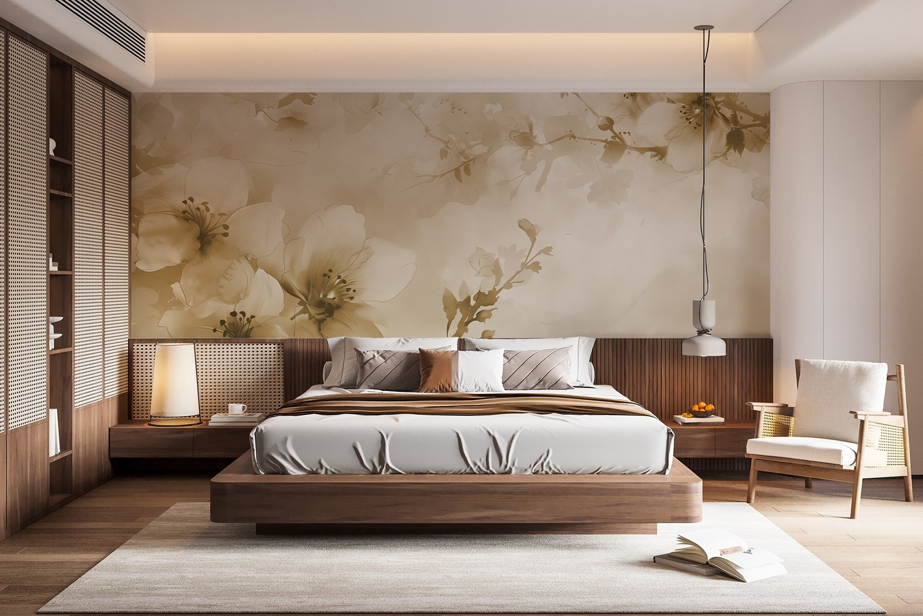 Alakítsa át terét egy álomszerű meneküléssé ezzel a lenyűgöző falfestménnyel, a “Finom virágokkal lágy árnyalatokban”. Képzelje el, hogy egy nyugodt japán kertbe lép, valahányszor belép a szobába. A gyengéd virágminták lágy ölelésbe burkolják Önt, nyugtató hangulatot teremtve, amely tökéletes egy csendes délutánhoz vagy egy meghitt éjszakához.