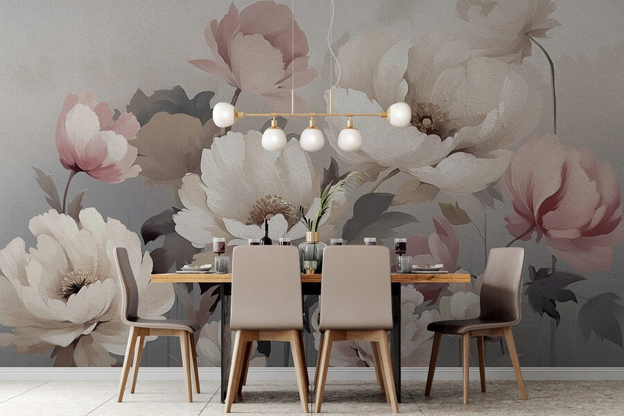 Alakítson át bármilyen teret ezzel a lenyűgöző, finom virágokkal festett falfestménnyel, amely a bazsarózsák és rózsák tökéletes keveréke. Képzelje el, ahogy besétál egy olyan szobába, ahol lágy pirosas árnyalatok és krémfehér színű virágok virítanak a falon, azonnal melegséget és karaktert kölcsönözve. Olyan, mintha egy kertet tartanál a lakásban – öntözés nélkül!