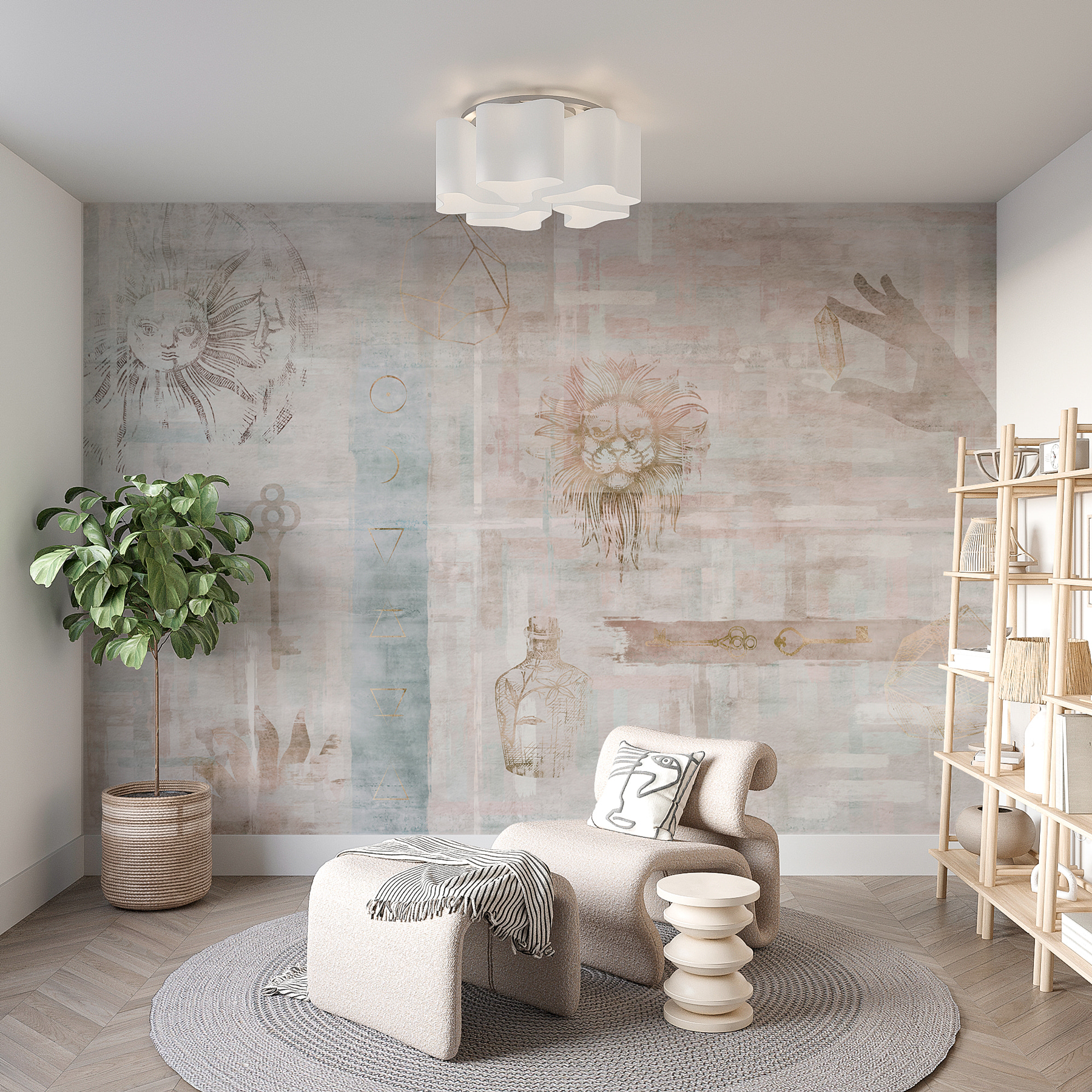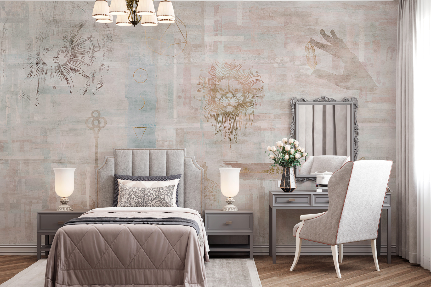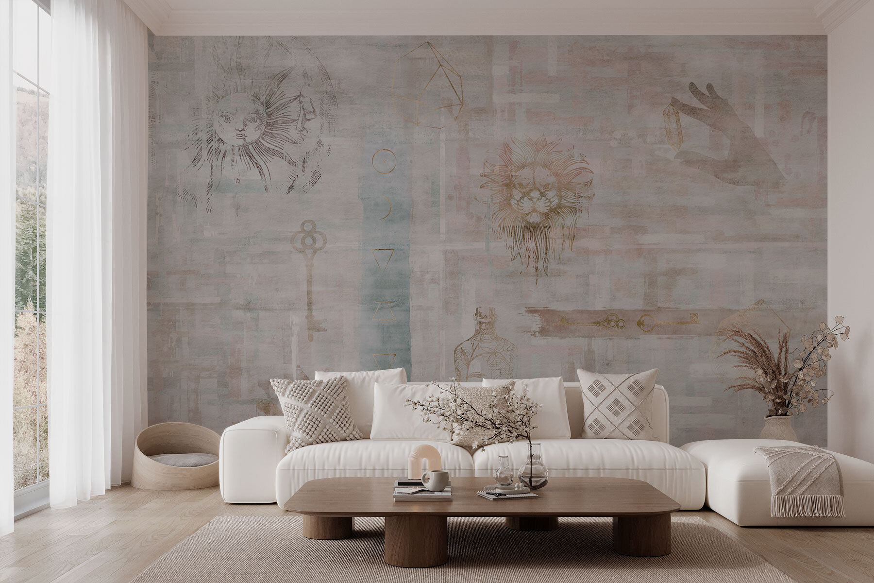 A tér átalakítása sokkal érdekesebbé válik ezzel a falfestménnyel. Képzelje el: különböző szimbólumok és játékos minták, amelyek hátteret teremtenek a kibontakozásra váró történeteknek. Egy oroszlán arca néz vissza rád, miközben titokzatos formák suttogják a titkokat. Képzelje el, hogy kávét kortyolgat egy olyan szobában, ahol ez a falfestmény beszélgetésre készteti, és egy hétköznapi délutánt elragadóan mókás kalanddá változtat. Olyan, mintha egy élő műalkotás lenne, amely arra invitál, hogy elmerülj a gondolataidban. Tökéletes azok számára, akik szeretik a szeszélyes hangulatot otthonukban – mert ki ne szeretne egy kis kalandot közvetlenül a falán?
