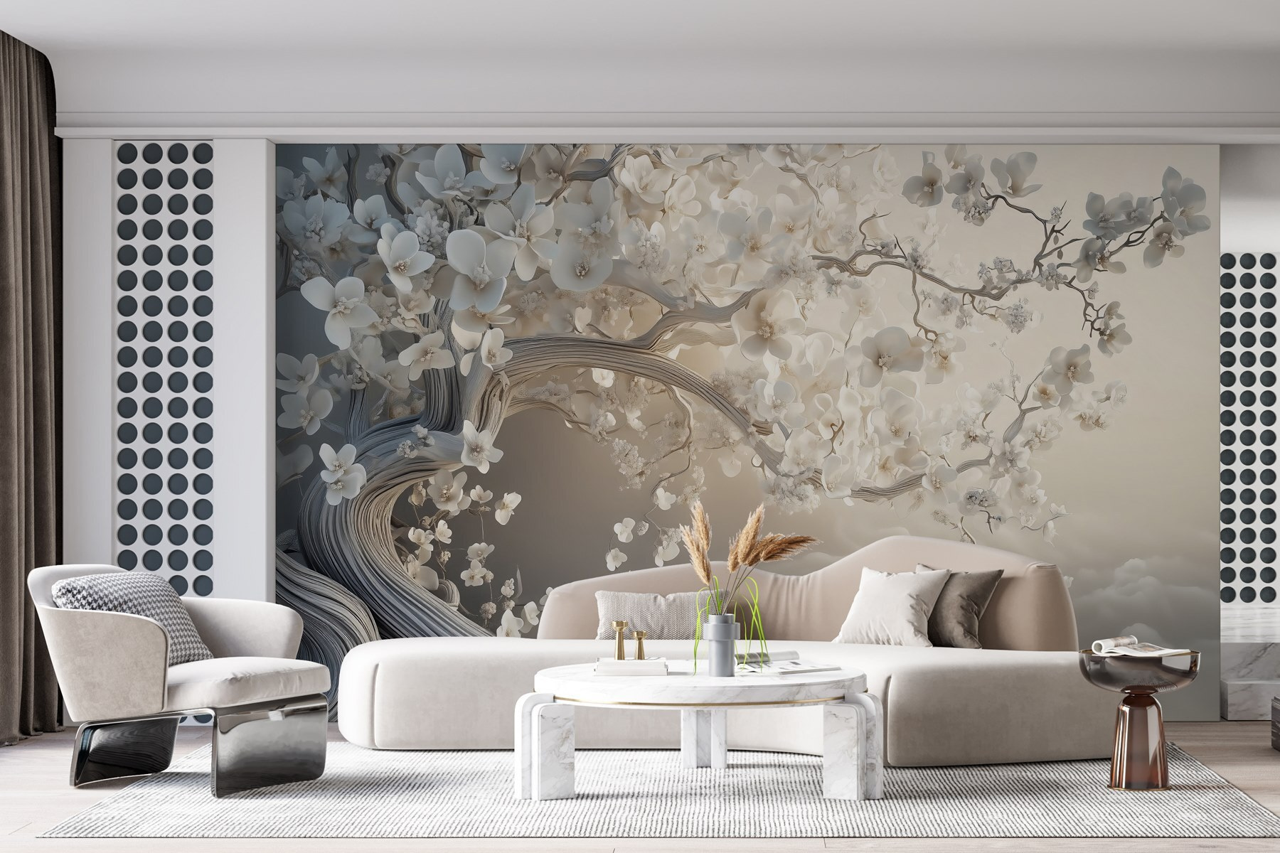 Alakítson át bármilyen teret a lenyűgöző “Fehér fa fehér virágokkal” falfestménnyel. Képzelje el, hogy egy nyugodt japánkertbe lép, ahol békés hangulat uralkodik, mint egy csésze meleg tea egy derűs reggelen. Ennek a falfestménynek a bonyolult mintázata a természet lágy suttogását hívja be a belső térbe, egyesítve a szépséget a nyugalommal. A kecses ágak lágyan ívelnek, finom virágokkal díszítve, amelyek úgy tűnik, táncolnak a szélben. Tökéletes a nappaliba vagy a hangulatos zugokba, olyan, mintha egy álomszerű menekülés lenne a falon. Gondolj csak bele – minden pillantás egy kis zen-t varázsolhat a napodba. Adja hozzá a természetnek ezt az érintését, és nézze meg, ahogy a hétköznapok szeszélyes csodavilággá válnak.
