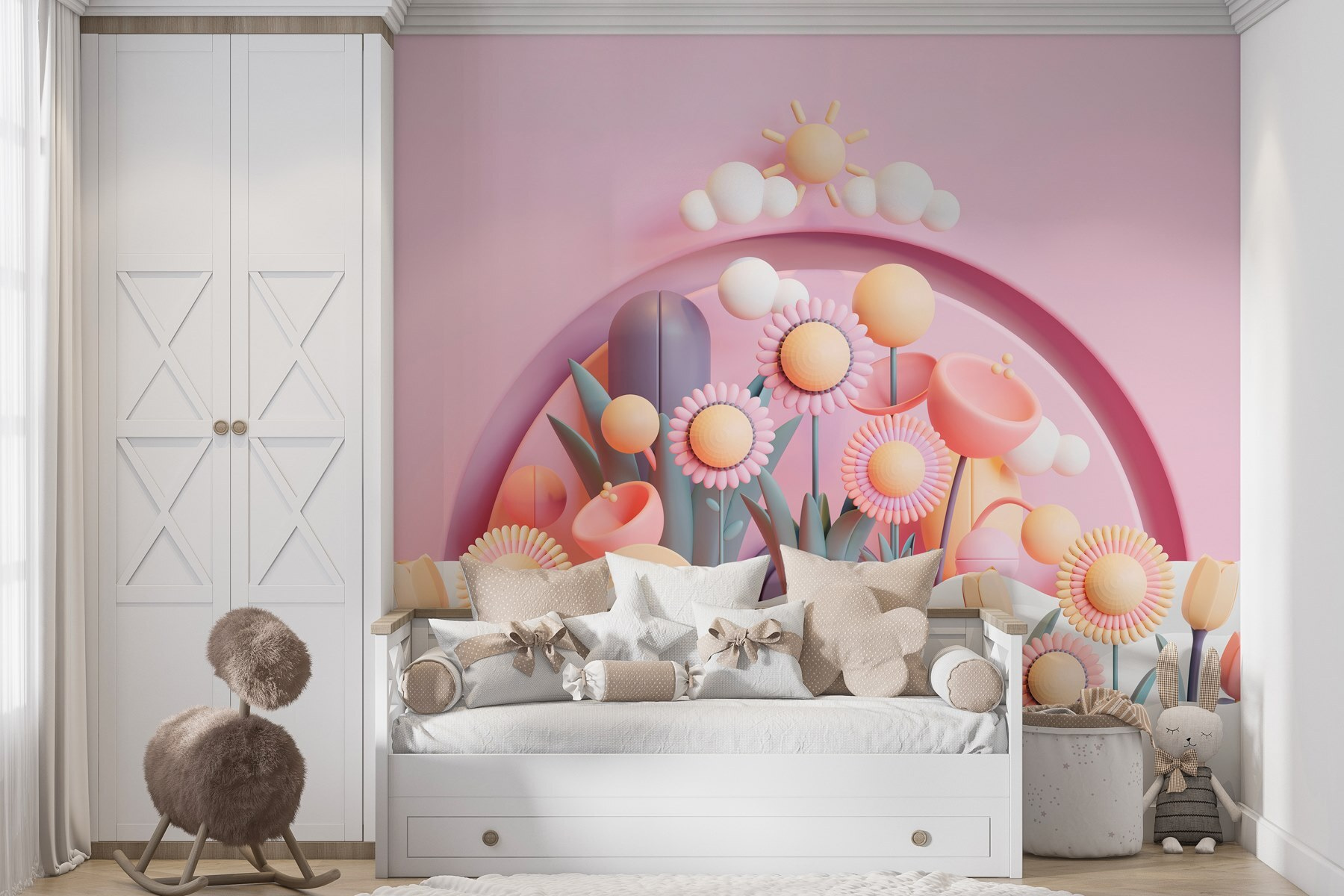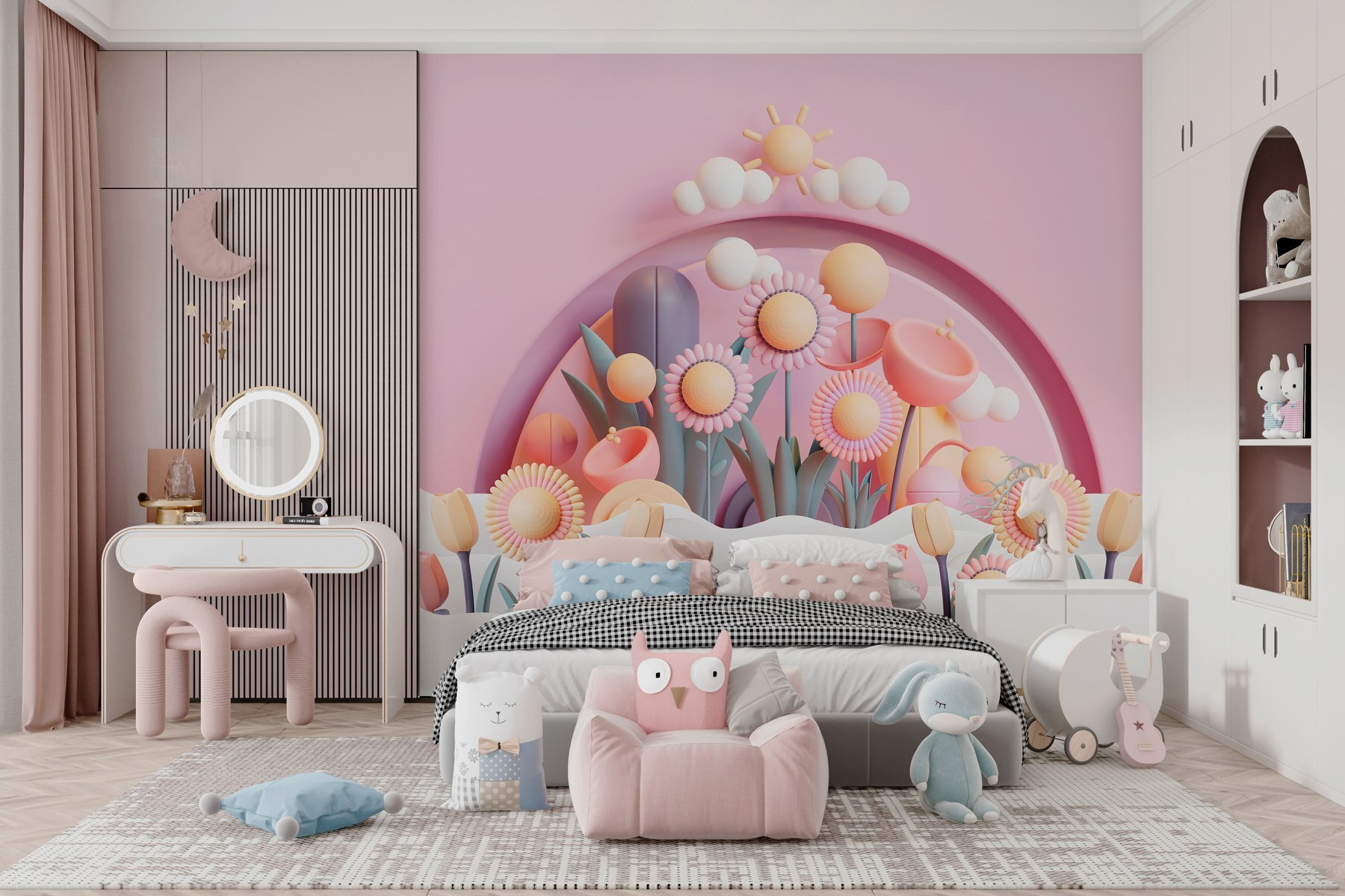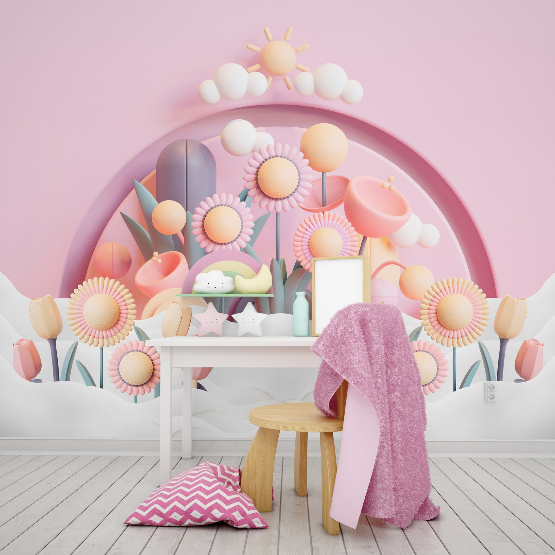 Dobja fel bármelyik teret ezzel a szeszélyes falfestménnyel, amelyen virágok és növények élénk csoportja látható. Képzeld el, hogy egy kertbe lépsz, ahol a színek pattognak és a virágok gyakorlatilag mosolyognak – olyan, mint egy nyári piknik a falakon! Ez a falfestmény tökéletes a gyerekszobákba vagy bármely olyan helyiségbe, amely egy kis vidámságra vágyik, és álmodozó hangulatot teremt, amely beindítja a képzeletet. A lágy rózsaszín háttér mindent otthonossá tesz, a játékos formák pedig kíváncsiságra késztetnek. Képzelje el, ahogy a kicsik kalandokat álmodnak e virágok között, vagy talán még néhány botanikai témájú teapartit is inspirálnak – minden a kellemesen játékos hangulatról szól. Vigyen egy kis vidámságot otthonába, és nézze, ahogy a mosolyok egyre csak nőnek!
