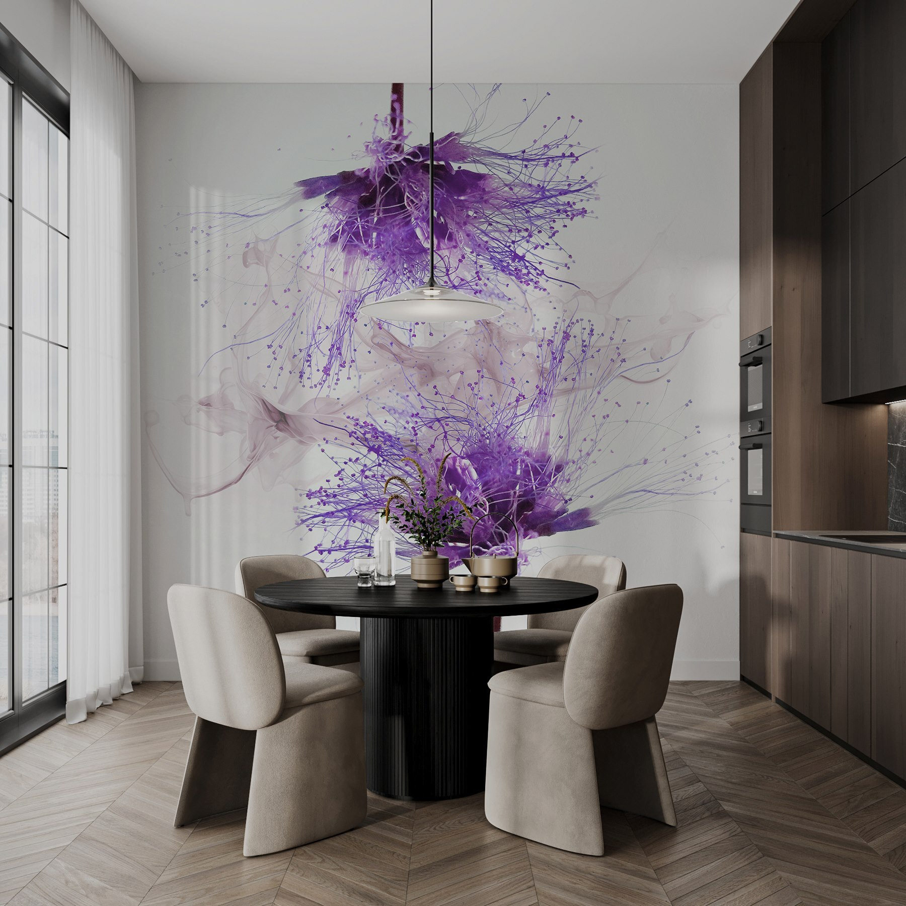 A “Lila virágok lila fröccsenésekkel” fali falfestmény segítségével bármilyen teret álomszép kertté varázsolhatsz. Képzelje el, hogy egy levendulamezőn sétál, ahol minden pillantás erre a falfestményre mosolyt csal az arcára. Élénk árnyalatai és játékos fröccsenései az öröm érzését keltik – tökéletes azokon a napokon, amikor az életnek egy kis felüdülésre van szüksége. Képzelje el egy hangulatos olvasósarokban vagy egy élénk konyhában, ahol beszélgetésre és melegségre ösztönöz. Úgy tűnik, minden ecsetvonás a természet titkait suttogja, és ezáltal úgy érzi, hogy kapcsolatban van és békében van. Azonnali nyugalomról beszélünk! Olyan, mintha a természet szépségét egyenesen befelé hozná – ki ne szeretné ezt?