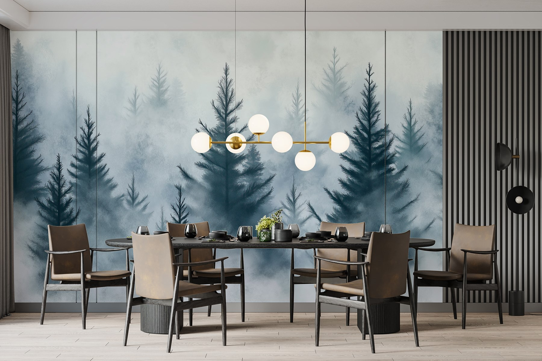 Képzelje el, hogy belép egy szobába, és egy lágy ködbe burkolózó, nyugodt erdő fogadja. Ez a falfestmény, a “Fák csoportja a ködben” pontosan ezt teszi, és békés erdei hangulatot hoz a helyiségedbe. Olyan, mintha egy mini menekülés lenne a természetbe, anélkül, hogy túrabakancsra lenne szükséged. Képzelje el, ahogyan egy könyvvel összegömbölyödik, a lágy köd és a tornyosuló fák pedig meghitt ölelésbe burkolják. A hűvös tónusok és a suttogó ágak bármelyik falat nyugodt oázissá varázsolhatják. Ez a falfestmény tökéletes a nappaliba vagy akár egy csendes, álmodozásra alkalmas sarokba, és egy kis vadont varázsol a mindennapokba. Csak tedd hozzá a kedvenc székedet, egy csésze teát, és hagyd, hogy elszálljon a nap. Ki gondolta volna, hogy otthon is lehet olyan érzés, mintha elmenekülnél?