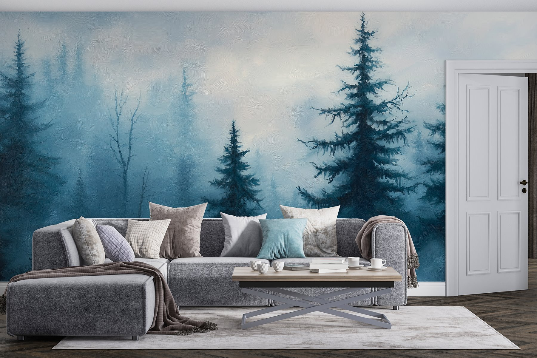 Alakítsa át terét a “Ködös erdő fákkal” falfestmény varázslatos bájával. Képzelje el, hogy belép egy ködös erdőbe, ahol minden pillantás olyan, mintha szelíden elmenekülne a természetbe. A lágy, tompa színek nyugtató hangulatba burkolják a szobát – tökéletes egy hangulatos olvasósarokba vagy egy nyugodt hálószobába.