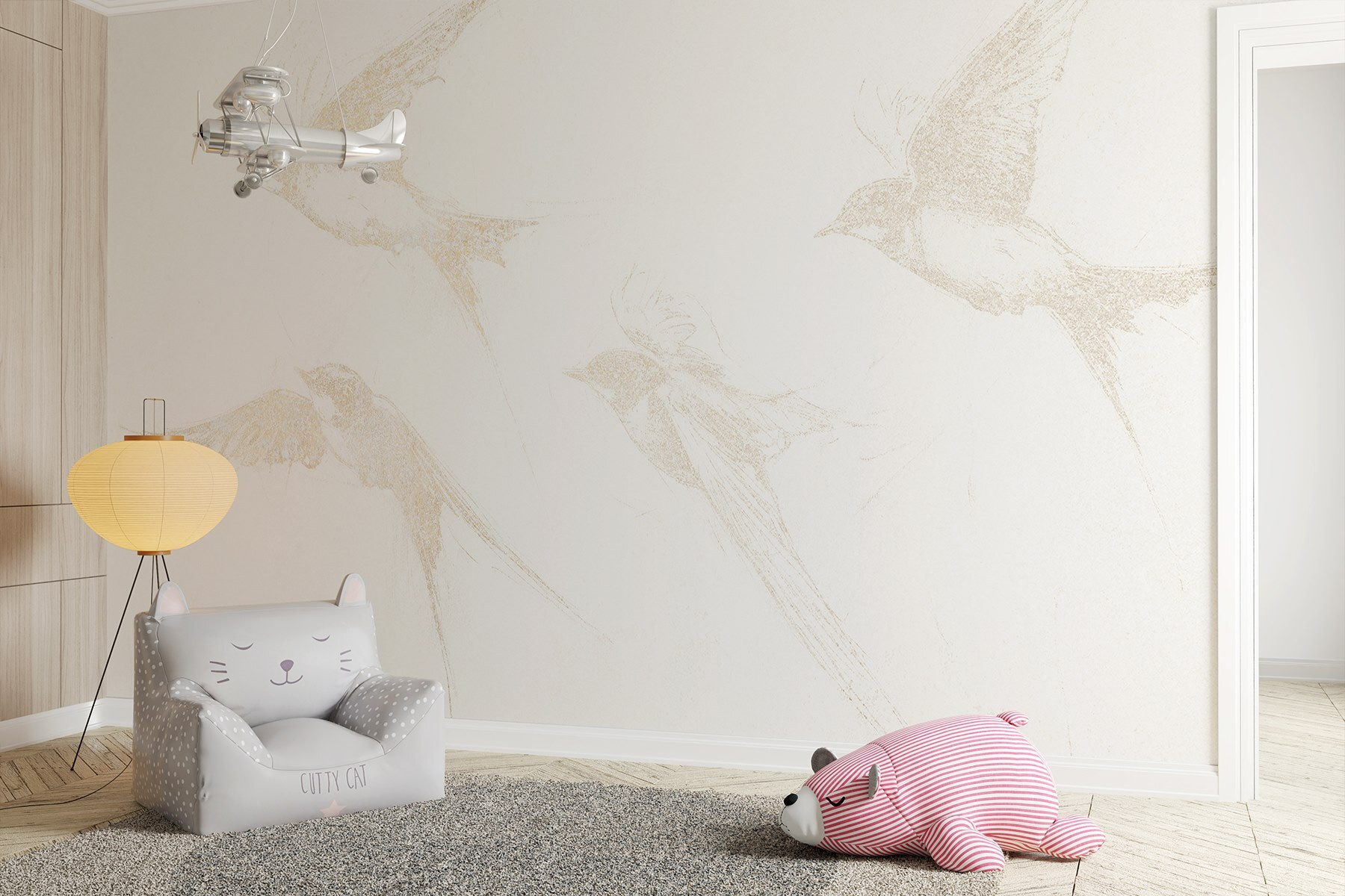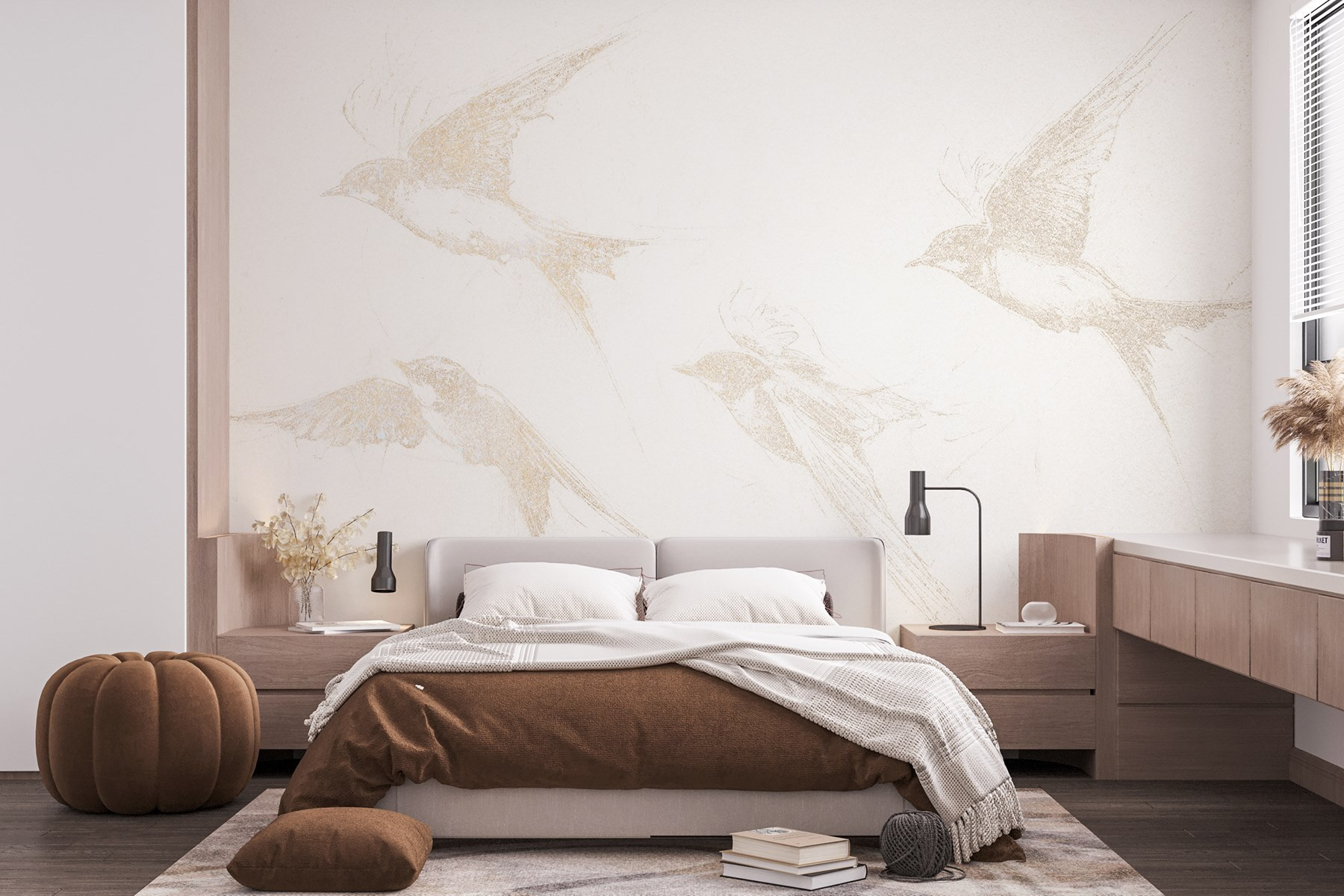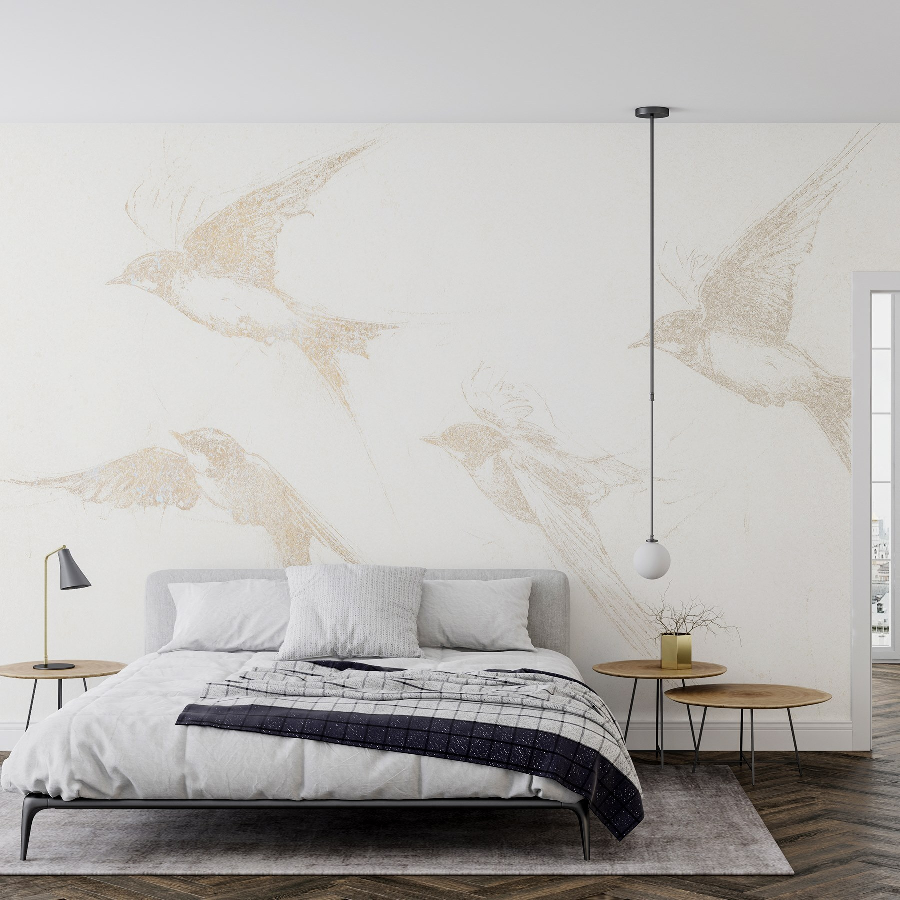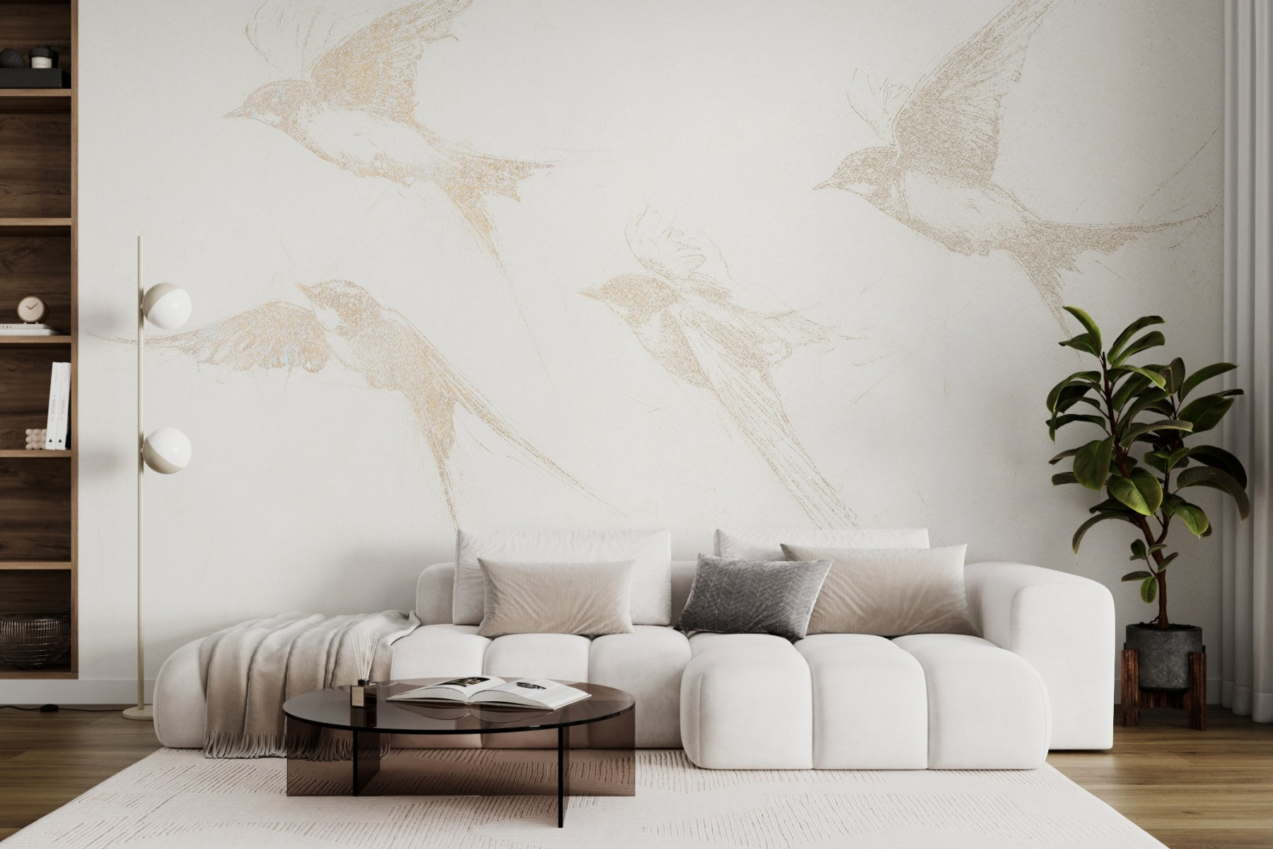 Dobja fel terét ezzel a lenyűgöző falfestménnyel, amelyen egy csapat madár repül. Olyan, mintha a természet egy darabja lenne a falon – itt nincs szükség madárleső távcsőre! A lágy, vázlatos dizájn szelídséget kölcsönöz, így bármelyik helyiségbe tökéletes. Képzelje el, ahogy a reggeli kávéját kortyolgatva bámulja ezeket a kecses teremtményeket, amint elszállnak mellette. Egy kis szeszélyességgel és rengeteg eleganciával, ez a falfestmény a szabadság és a könnyedség érzését kelti. Ideális a nyugodt légkör megteremtéséhez, és ki ne vágyna egy kis természetre a lakásban? Tökéletes azokba a hangulatos sarkokba, ahol csak lazítani szeretne.