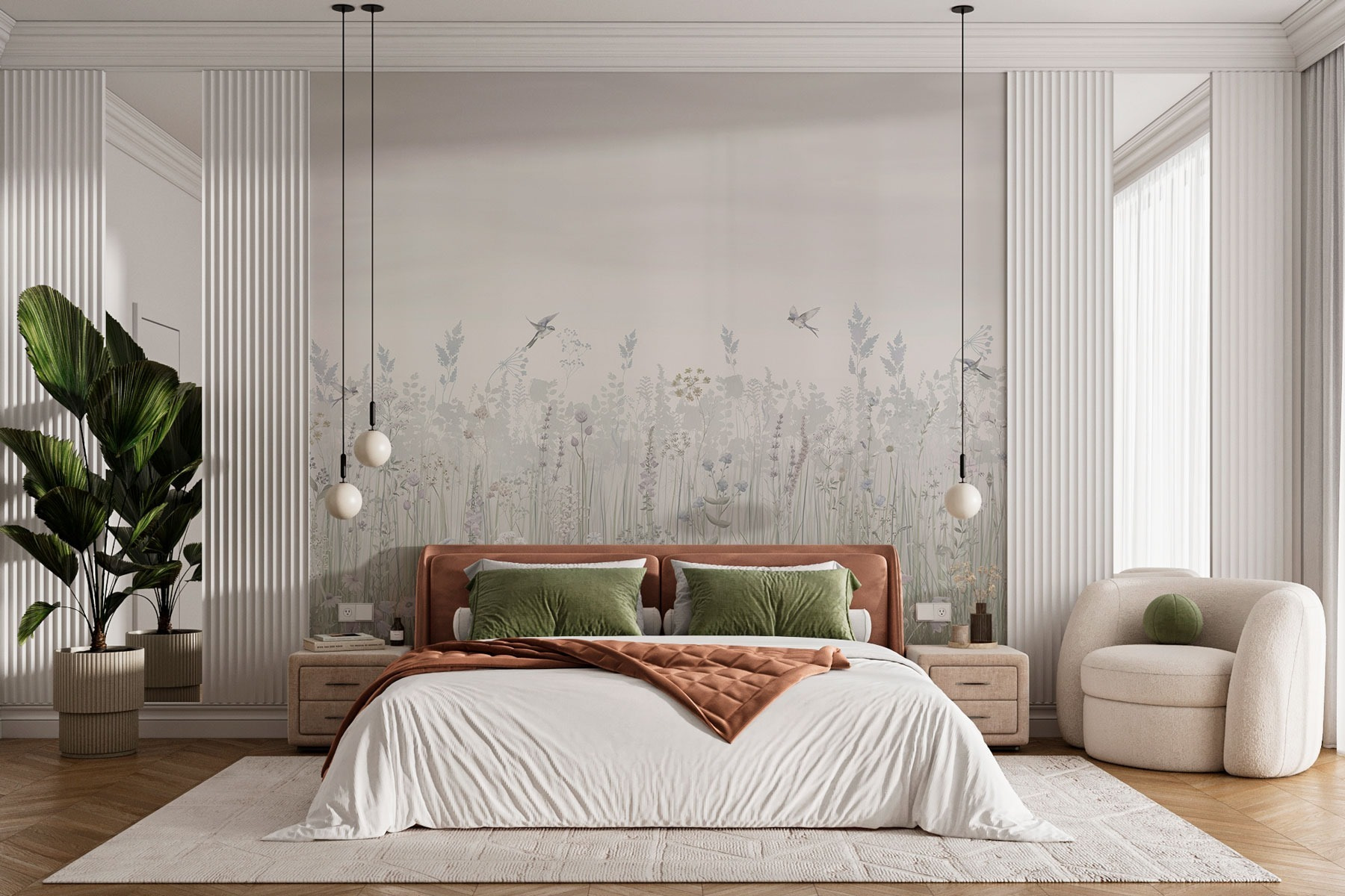 A “Virágok és madarak mezeje” falfestmény segítségével bármelyik helyiséget nyugodttá varázsolhatja. Képzeld el a lágy színeket és a finom virágokat, amelyek lágyan ringatóznak egy álomszerű szellőben – mint egy mini kirándulás a faladon. Tökéletes azok számára, akik a természet egy csipetnyi jellegét szeretnék a beltérbe vinni a kosz nélkül! És azok a kis madarak? Olyanok, mint az öröm apró hírnökei, akik életet visznek a térbe. Képzelje el, ahogy itt kortyolgatja a reggeli kávéját, nyugalmat és ihletet érezve. Ez a falfestmény nem csak dekoráció; ez egy hangulat, egy pillanat, egy érzés. Ráadásul nem kell öntözni – pont!