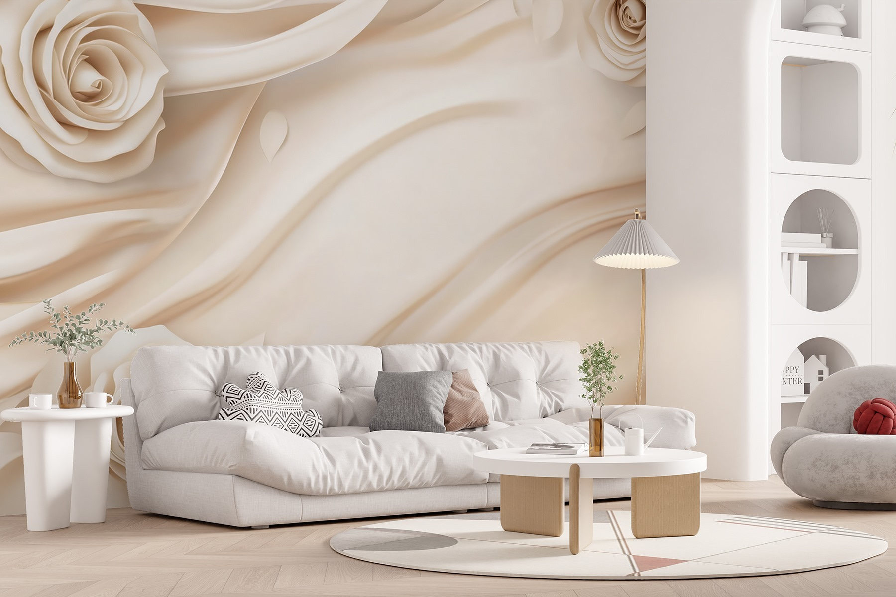 Képzelje el, hogy egy unalmas falat a “Fehér rózsák fehér ruhán” segítségével derűs meneküléssé varázsol. Ez a falfestmény könnyedén lágyabbá tesz bármilyen teret, és mindent a nyugalom érzésébe burkol. A finom rózsák mintha édes semmiségeket suttognának, álomszerű hangulatot teremtve – tökéletes egy hangulatos olvasósarokba vagy akár egy elegáns étkezőbe. Olyan, mintha egy kertet tartanál a beltérben, az öntözéssel járó rendetlenség nélkül! Képzelje el, ahogy a barátai besétálnak, megpillantják ezeket az elegáns virágokat, és azonnal otthon érzik magukat. Ráadásul ki ne szeretné, ha a falai személyiséggel virágoznának? Ez a virágművészet elbűvöl, vigasztal, és szelíd benyomást kelt.