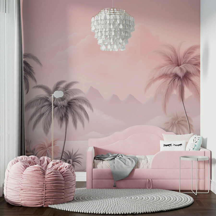 Alakítsa át terét nyugodt pihenőhellyé ezzel a lenyűgöző falfestménnyel, amelyen buja pálmafák és nyugodt hegyek láthatók. Képzelje el, ahogy kedvenc italát kortyolgatja, miközben a rózsaszín és a szürke szelíd árnyalatai beborítják, és minden napot nyaralásnak érezhet. Tökéletes a nyugodt hangulat megteremtéséhez – akár a nappaliban, akár abban a hangulatos olvasósarokban, amelyre vágysz! Ahogy a hegyek átbukkannak a pálmák között? Tiszta varázslat. Olyan, mintha a természetet behoznánk a házba, és egy-egy pillantással megnyugtatnánk a lelket. Ráadásul elég merész ahhoz, hogy beszélgetésindító legyen – ki ne csodálná ezt?