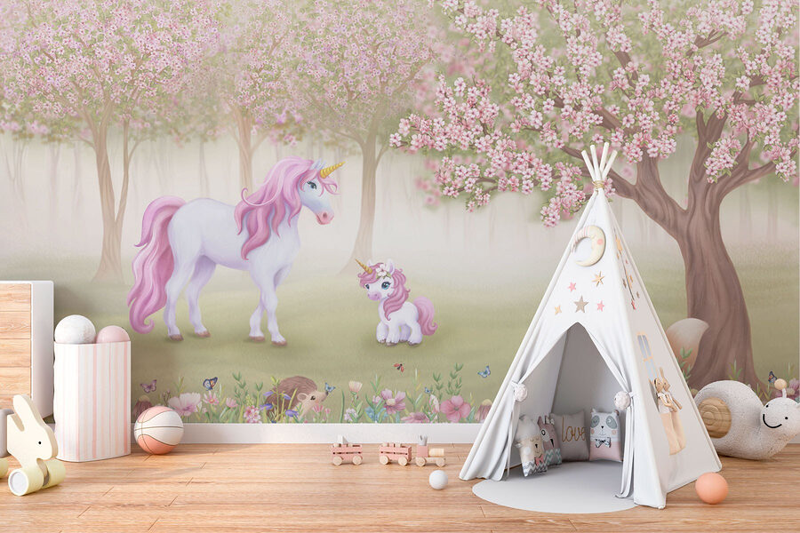 Változtasson bármilyen szobát szeszélyes csodavilággá ezzel a varázslatos falfestménnyel, amelyen egy egyszarvú és szőrös barátai láthatók. Képzelje el a finom rózsaszín virágokat, amint lágyan ringatóznak, és édességgel töltik meg a levegőt – tökéletesen alkalmas arra, hogy minden nap örömöt okozzon. Az egyszarvúak és az imádnivaló erdei állatok duója olyan szelíd, játékos energiára hívogat, amelynek nehéz ellenállni. Képzelje el az olvasással vagy álmodozással töltött hangulatos délutánokat, a természet szépségével csak egy pillantásnyira. Ez a falfestmény nem csak díszít – történetet mesél, melegséget és egy kis varázslatot hoz a falakra, amelyekre ráférne egy kis vidámság. Tökéletes gyerekszobákba, vagy bárki másnak, akinek fiatal a szíve!