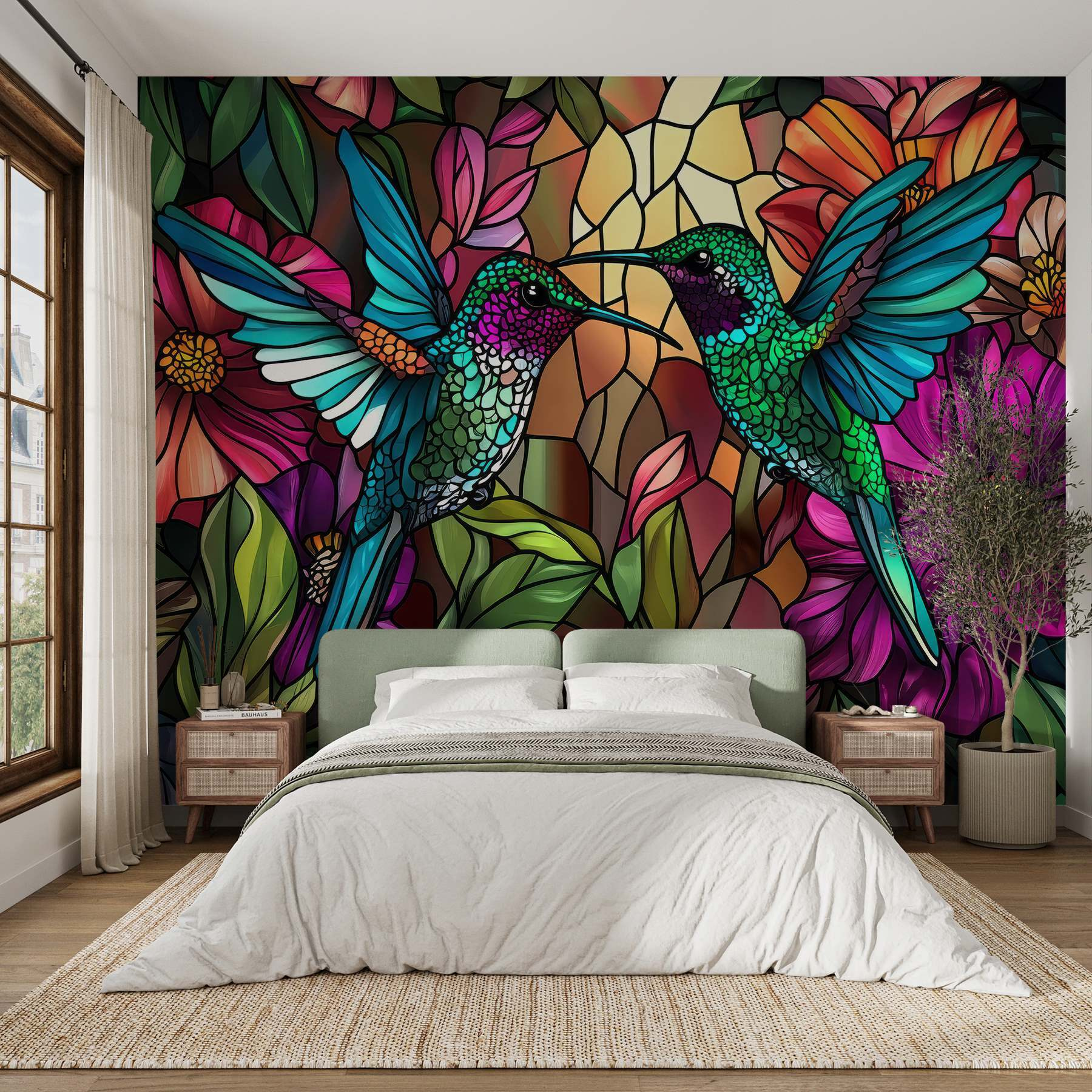 Változtasson át bármilyen szobát vibráló oázissá ezzel a látványos “Színes üvegablak színes madarakkal” falfestménnyel. Képzelje el: két káprázatos kolibri repülés közben, körülvéve merész virágokkal. Olyan, mintha a természet egy darabját hozná be a lakásba – a piszkos pollenek nélkül! A színek olyan gyönyörűen pattognak, hogy úgy érezheti, mintha egy koktélt kortyolgatna egy napsütötte teraszon. Képzelje el, hogy felébred, és egy ilyen élénk jelenet fogadja – beszéljünk a hangulatfokozóról! Tökéletes a természet szerelmeseinek, vagy bárkinek, aki egy kis vidámságot szeretne vinni a terébe. Voilá, azonnali báj!