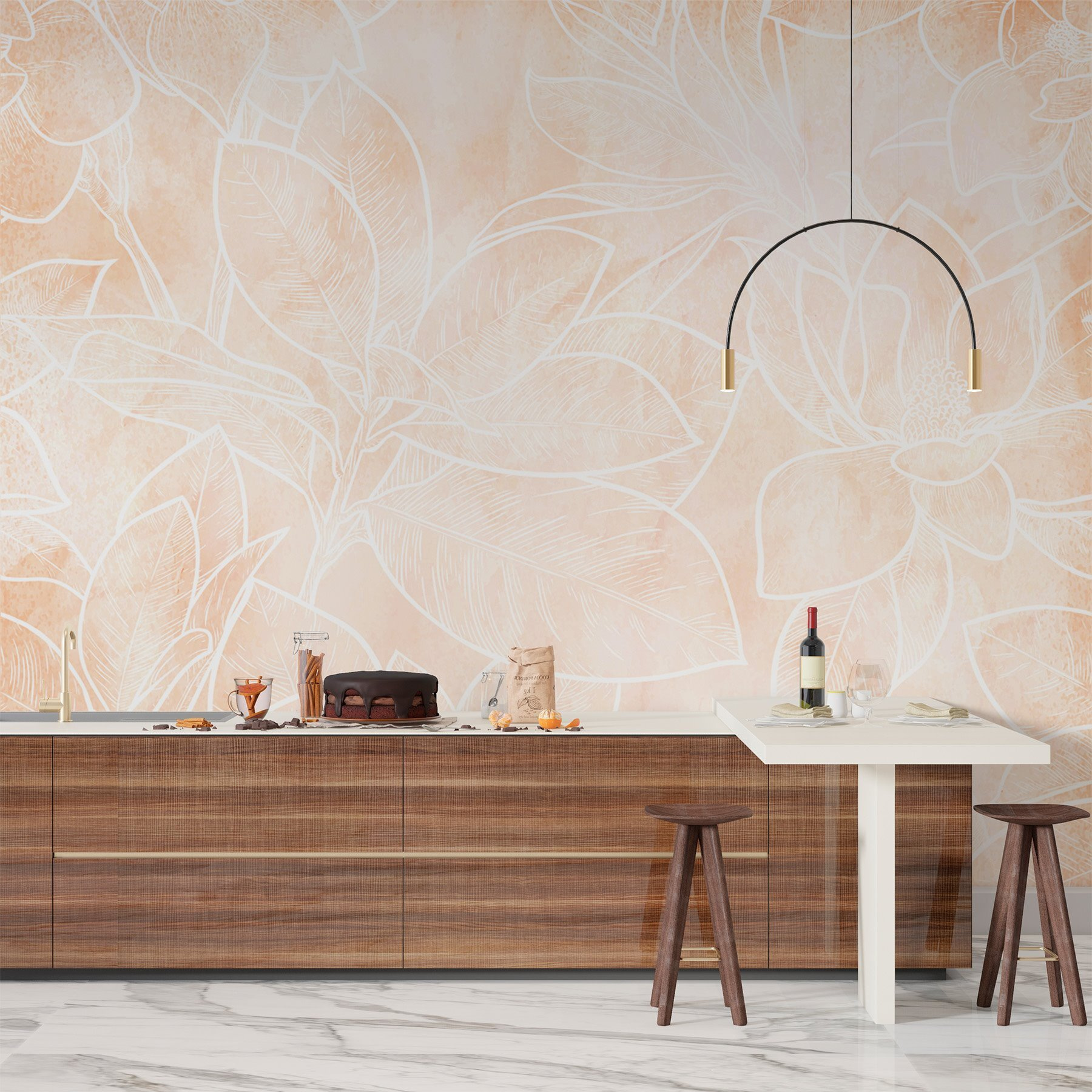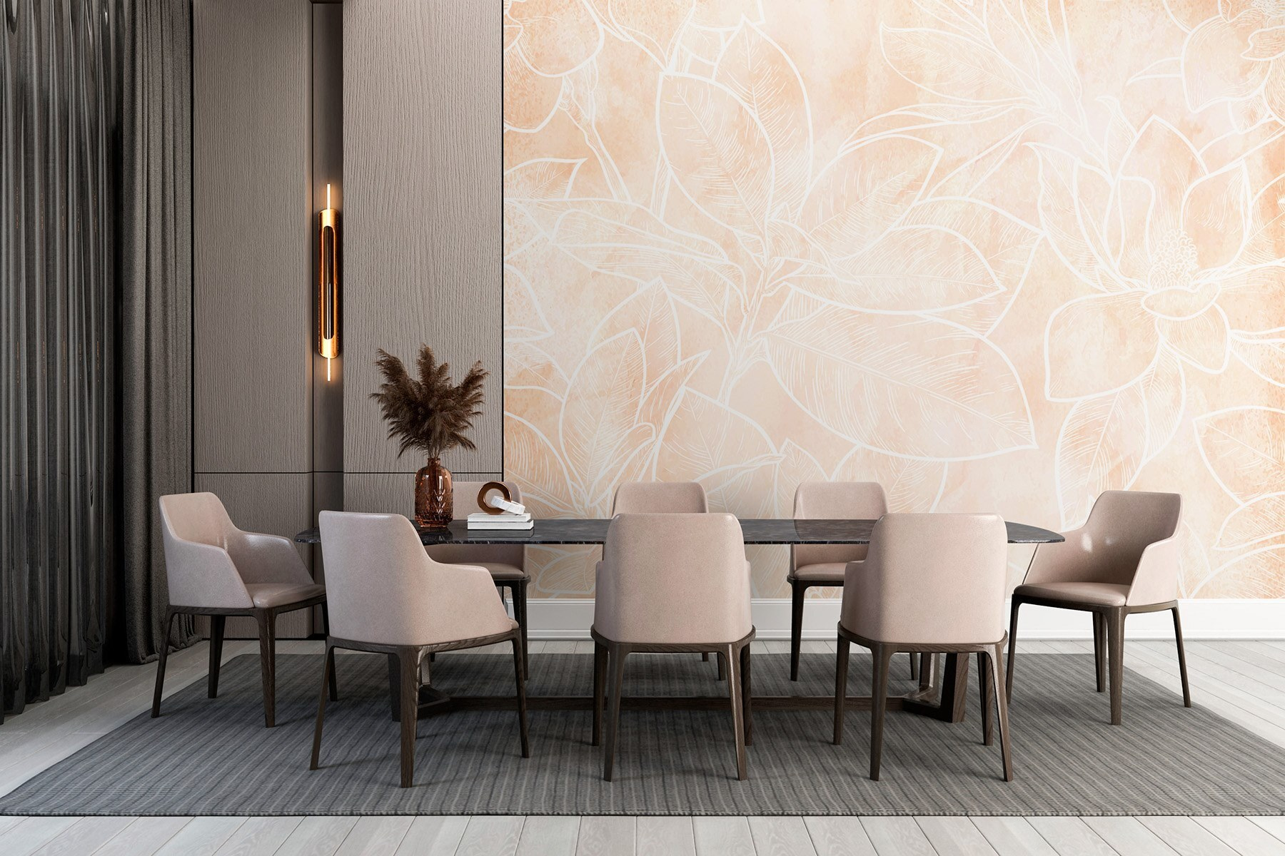 Alakítson át bármilyen helyiséget ezzel a lenyűgöző falfestménnyel, amely egy finom, fehér vonalas, virágokat ábrázoló rajzot tartalmaz. Olyan, mintha egy gyengéd tavaszi szellőt invitálna egyenesen az otthonába. A lágy tónusok és a bonyolult minták nem csak díszítik a falat; melegséget és egy kis természetet hoznak a belső térbe. Képzelje el, ahogy kávét kortyolgatva elmerül egy olyan térben, amely egyszerre nyugtató és felemelő érzés. Tökéletes egy hangulatos sarokba vagy egy kijelentő falra, és beszélgetésindító is – ki ne szeretne egy kis virágos bájt? A falai hálásak lesznek érte!