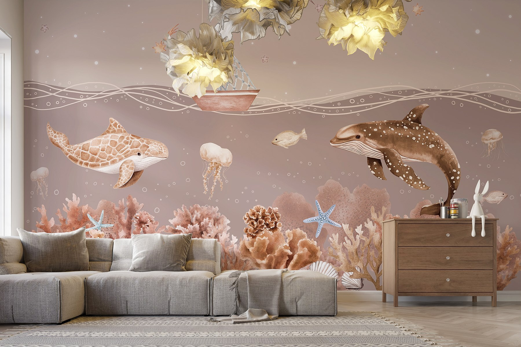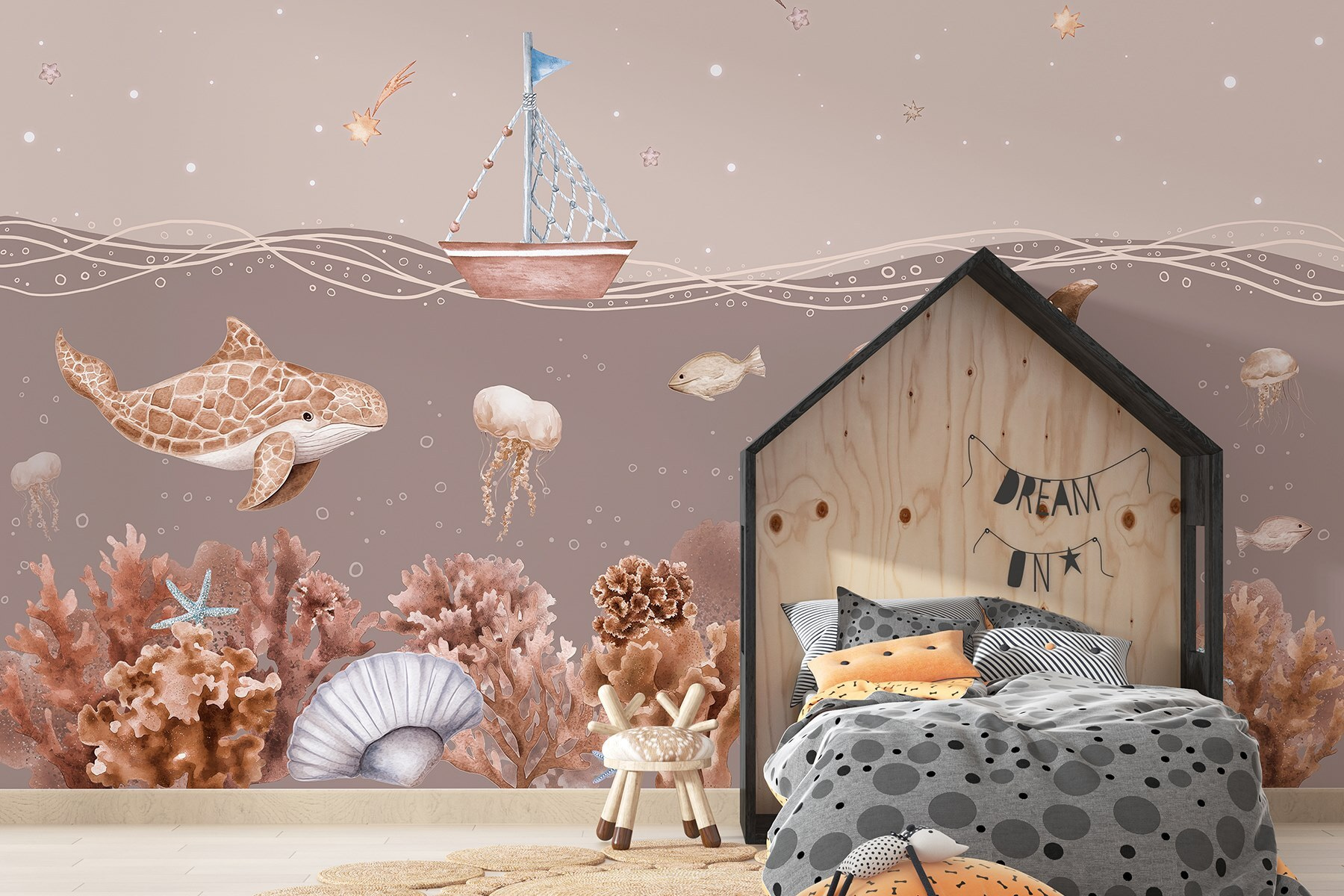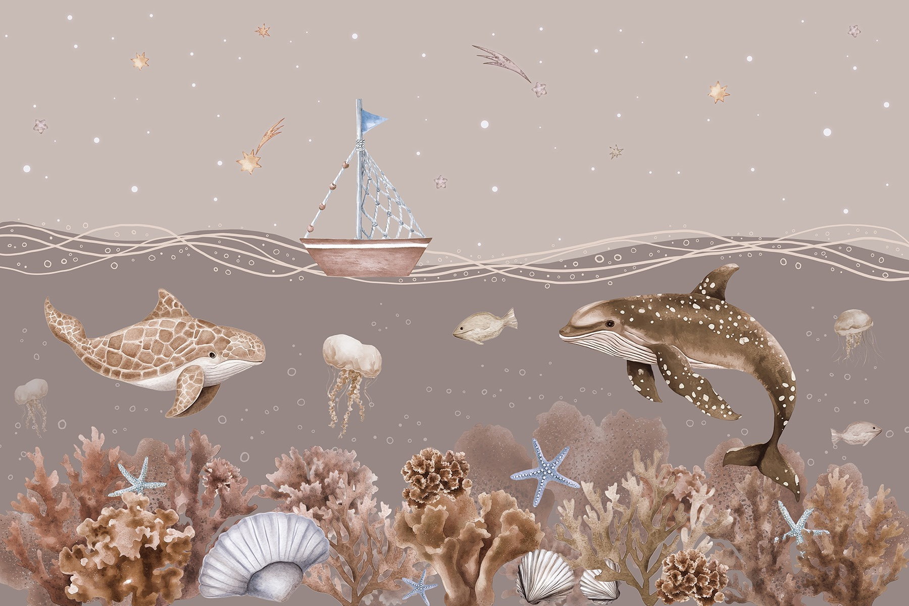 Fotótapéta Tengeri élet csónakkal és halakkal Fotótapéta Tengeri élet csónakkal és halakkal