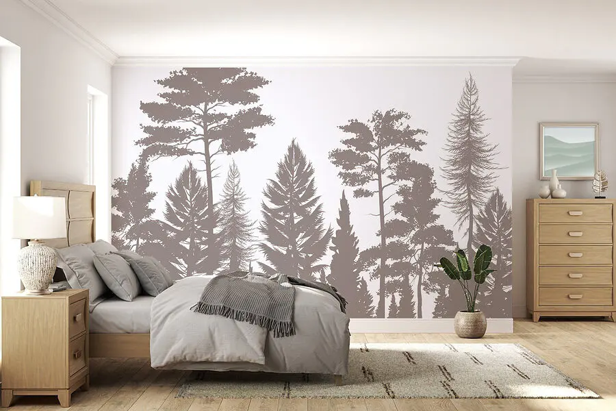 Alakítsa át terét ezzel a fákkal teli erdőt ábrázoló lenyűgöző falfestménnyel, amely tökéletes mindazoknak, akik a természet egy kis szeletére vágynak a belső térben. Képzelje el, ahogy belép hangulatos nappalijába, és úgy érzi, mintha egy nyugodt ligetben sétálna, ahol a szelíd árnyékok és a nyugodt sziluettek nyugodt hangulatot árasztanak. A földes tónusok meleg hátteret teremtenek, így a többi dekoráció anélkül tűnik fel, hogy túlterhelné az érzékeket. Olyan, mintha egy kis friss levegőt hoznál az otthonodba. A barátaid talán még azt is megkérdőjelezik, hogy van-e egy titkos faházad az erdőben. Tökéletes a természet szerelmeseinek, vagy bárkinek, akinek szüksége van egy kis menekülésre a mindennapi nyüzsgés elől!