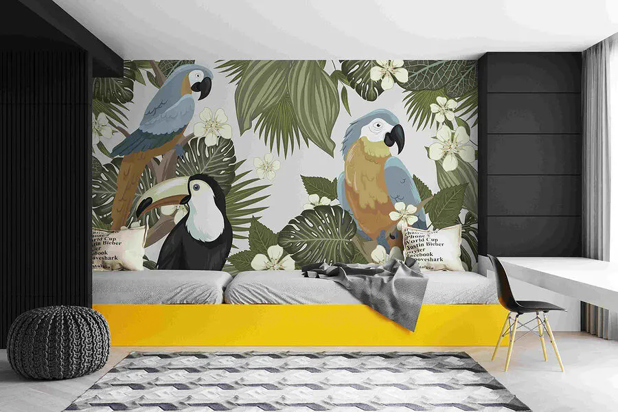 Alakítsa át terét ezzel a vibráló falfestménnyel, amely egy faágon ülő madarak élénk csoportját ábrázolja, tökéletesen beágyazódva a buja levelek és finom virágok közé. Ez nem csak egy fali dekoráció; egy kis természetet invitál egyenesen az otthonába. Képzelje el, ahogy a reggeli kávéját kortyolgatja, miközben ezek a színes lények csevegnek – beszéljünk csak az élénk hangulatról! Akár egy hangulatos nappaliban, akár egy vidám gyerekszobában, ez a falfestmény melegséget és trópusi hangulatot kölcsönöz. Ki ne szeretné érezni a dzsungel szellőjének lágy ringatózását minden alkalommal, amikor arra jár? Tökéletes a madarak szerelmeseinek vagy bárkinek, akinek szüksége van egy kis szeszélyre!