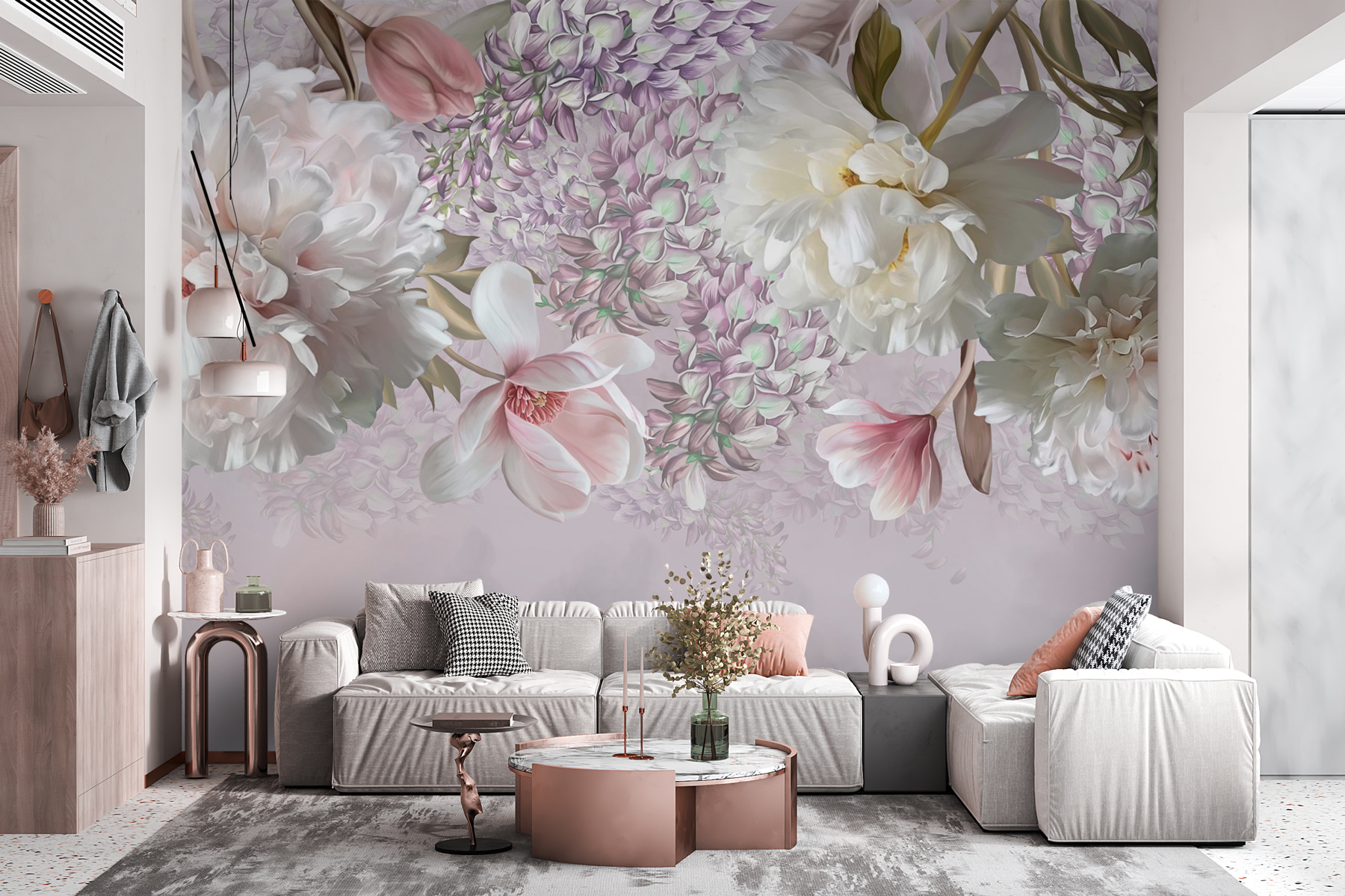 Képzelje el, hogy belép egy szobába, ahol a finom virágok lágyan ringatóznak, és édes semmiségeket suttognak, miközben a falon táncolnak. A rózsaszín és a fehér gyengéd árnyalataival ez a falfestmény egy nyugodt kert varázsát hozza el a helyiségedbe. Olyan, mintha a természet egy saját szeletét birtokolnád – az allergiát leszámítva! Képzelje el, hogy vendégül látja barátait egy kávé mellett, és ők nem tehetnek mást, mint hogy megcsodálják a szépséget, amely gyakorlatilag a szemük előtt virágzik. Ez a falfestmény nem csak díszít; melegséget és egy csipetnyi eleganciát sugároz, és tökéletes hangulatot teremt a pihenéshez vagy az inspirációhoz. A természet és a művészet találkozása – igazán kellemes beszélgetésindító!