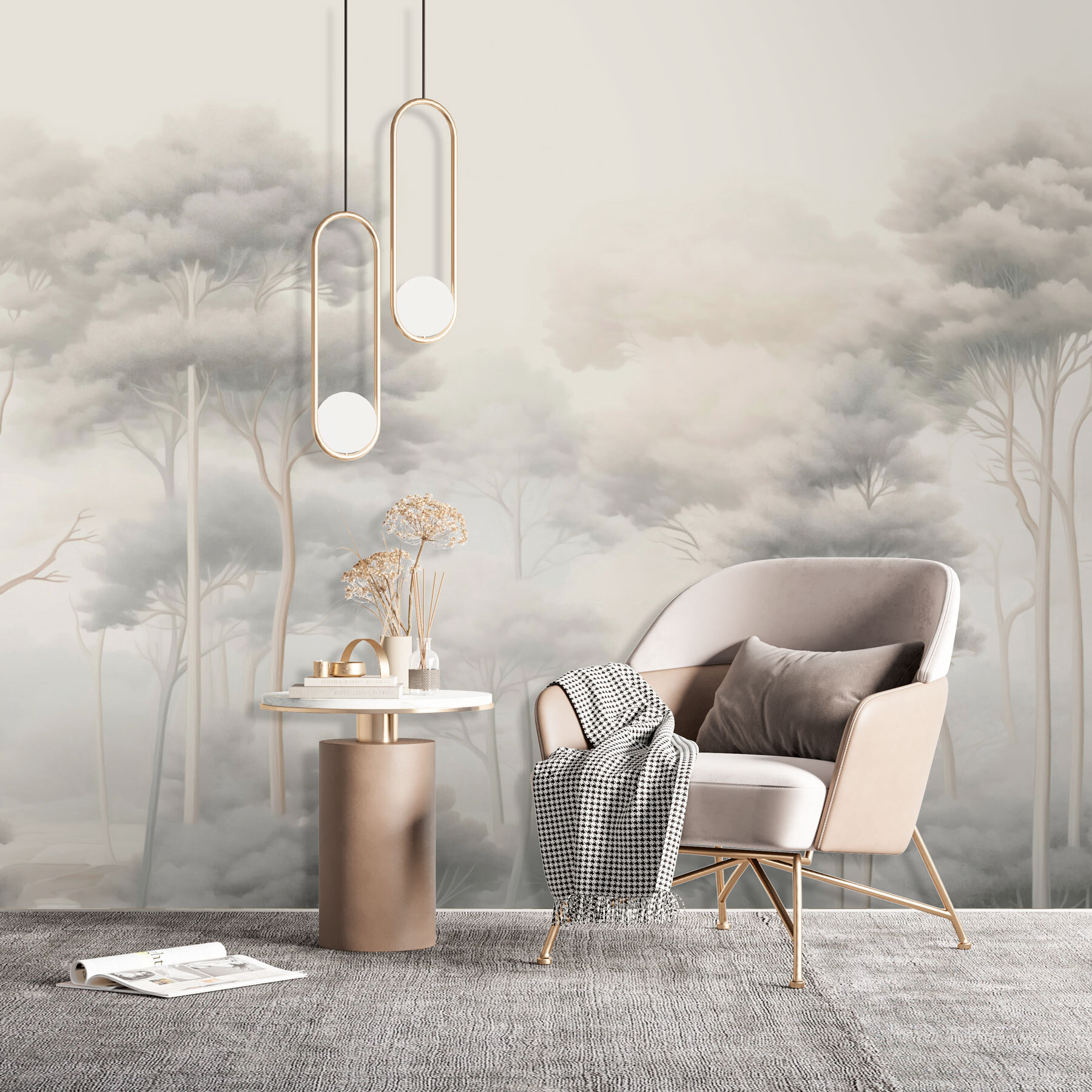 Lépjen be a nyugalomba ezzel a lenyűgöző falfestménnyel: “Fák csoportja a ködös erdőben”. Képzelje el, hogy egy hangulatos zugban ébred, amelyet magasra törő fák vesznek körül, sziluettjeiket finoman ködbe burkolva. Olyan, mintha a természet egy darabkáját hívnád be az otthonodba – túrabakancs nélkül! Tökéletes azokhoz a lusta reggelekhez, amikor a kávé jobb ízű a nyugalomban. A lágy tónusok nyugalmat árasztanak, így bármilyen helyiséget békés menedéknek érezhet. Ráadásul az erdei kalandokról vagy a tűz mellett töltött meghitt éjszakákról való álmodozást is beindítja. Felejtsd el az egyszerű falakat – ez a falfestmény a te titkod a hangulatos bájhoz!