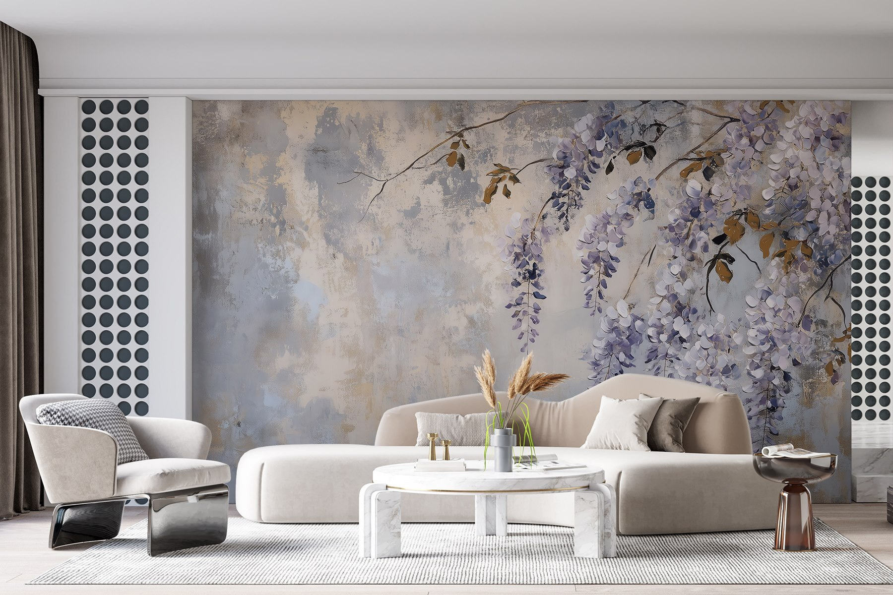 Alakítsa át terét ezzel a lenyűgöző falfestménnyel, amely egy finom ágat ábrázol, amelyet gyönyörű lila virágok díszítenek. Olyan, mintha egy nyugodt kert lenne az otthonában, anélkül, hogy zöld hüvelykujjra lenne szüksége! A kék és lila színek lágy palettája nyugodt, hívogató légkört teremt. Képzelje el, hogy erre a szépségre ébred – a reggeli kávézás pillanatait egészen különlegesnek fogja érezni. Akár egy hangulatos zugban, akár egy világos nappaliban, ez a falfestmény eleganciát és bájt sugároz, miközben tavaszi sétákról szóló kis álmodozásokat ébreszt. Tökéletes mindenkinek, aki értékeli a természet érintését a beltérben!