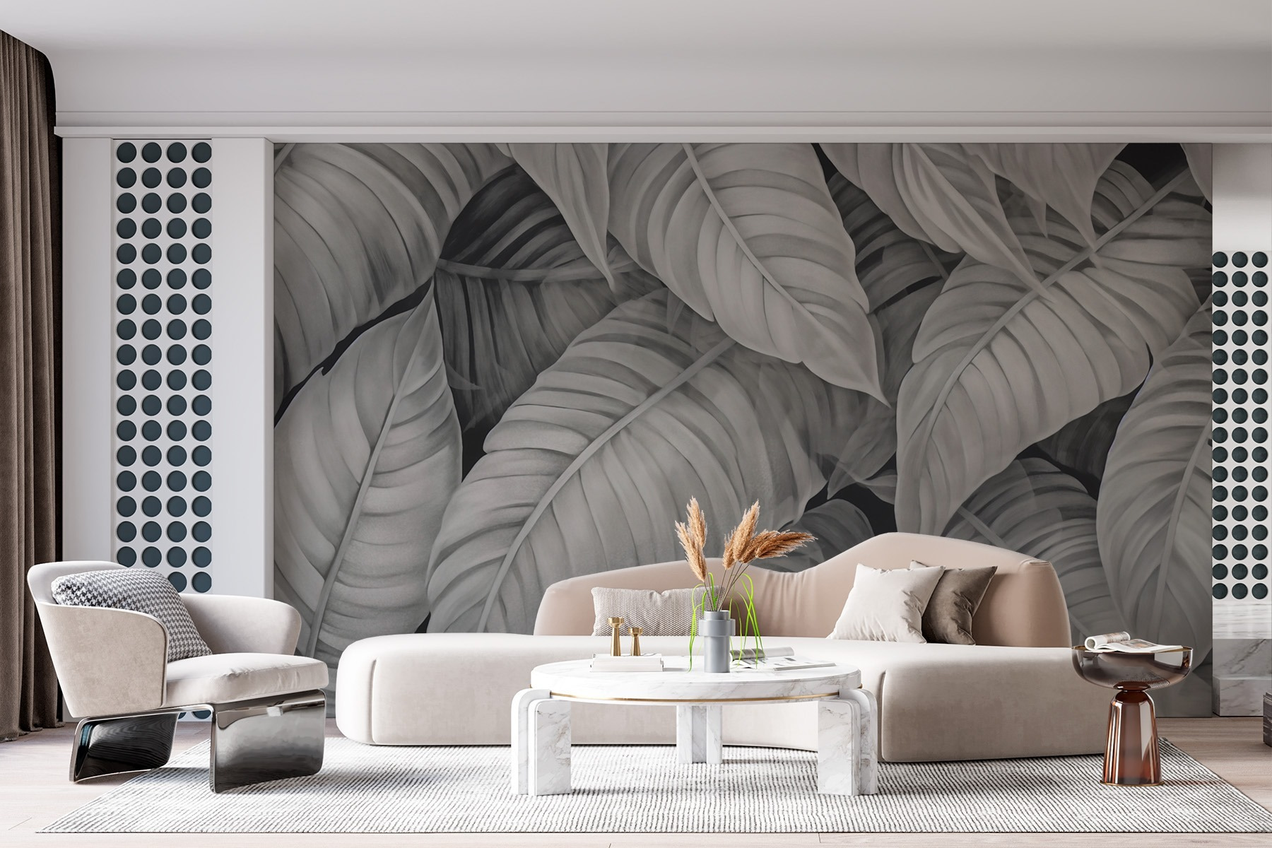 Alakítson át bármilyen teret nyugodt meneküléssé ezzel a lenyűgöző “Levélcsoport egy kupacban” falfestménnyel. Képzelje el, hogy besétál egy olyan szobába, ahol a buja lombok nyugtató jelenléte körülöleli Önt. A lágy szürke tónusok álomszerű hangulatot teremtenek, tökéletes trópusi hangulatot adva anélkül, hogy útlevélre lenne szükség. Olyan, mintha egy mini dzsungel lenne a faladon – persze a bogarak nélkül! Tökéletes egy hangulatos olvasósarokba vagy egy merész kijelentés a nappaliban. Képzelje el, ahogy egy csésze teával a természet eleganciájával körülvéve összegömbölyödik. Ez egy frissítő lélegzetvétel, beltérben!