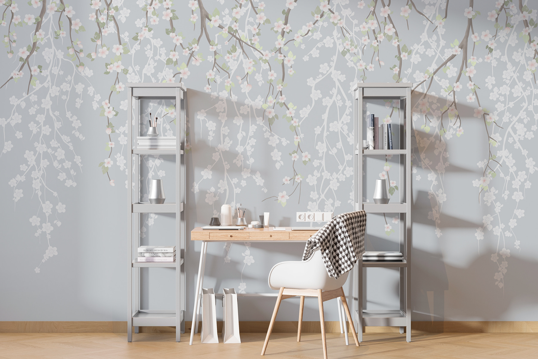 Bármelyik szobát nyugodttá varázsolhatja ezzel a varázslatos falfestménnyel, amelyen finom fehér virágok hullámzanak a faágakról. Képzelje el, hogy egy olyan térbe lépve azonnal olyan érzése támad, mintha egy békés japán kertben lenne – anélkül, hogy kertészkesztyűre lenne szüksége! Ez a falfestmény a természet szépségét hozza be a belső térbe, nyugtató hátteret teremtve, amely tökéletes a pihenéshez vagy a kreativitás inspirálásához. A lágy színpaletta nyugalmat áraszt, így nehéz nem hátradőlni és álmodozni. Tökéletes választás nappaliba, hálószobába vagy abba a hangulatos zugba, ahol az élet legjobb ötletei virágoznak. Olyan, mintha a természet egy darabkája lenne otthon – a bosszantó pollenek nélkül!