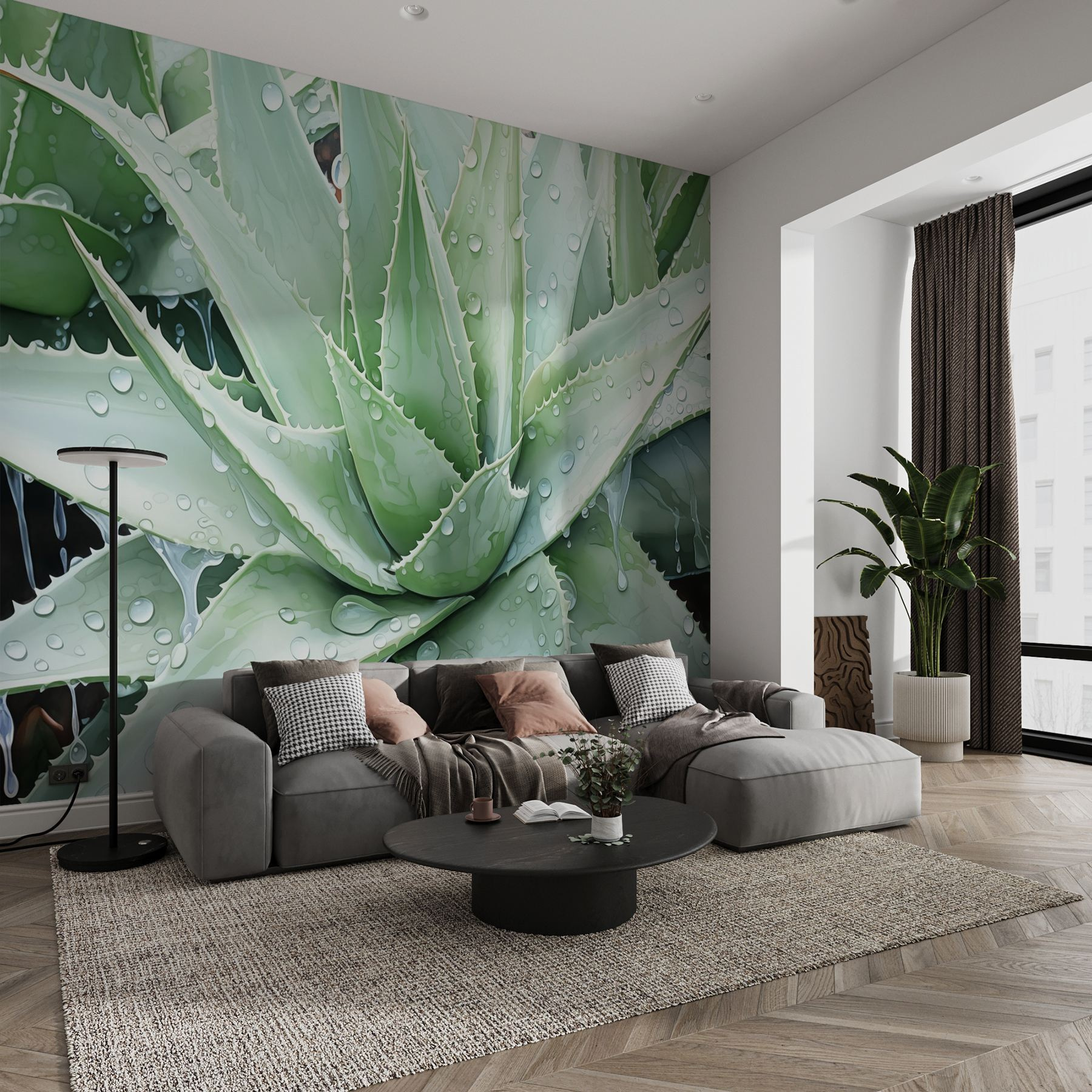 Alakítsa át terét egy buja oázissá ezzel a lenyűgöző falfestménnyel, amelyen élénkzöld növények csillogó vízcseppekkel csókolják meg. Olyan, mintha a természet egy kis darabkáját hozná be a házba – az egész öntözési menetrend nélkül. Képzelje el, hogy egy olyan szobába lép be, amelyet frissnek és élénkítőnek érez, ahol a falfestmény minden egyes pillantása a dzsungel derűs hangulatába repítheti. Tökéletes otthoni irodába vagy hangulatos olvasósarokba, örömet és nyugalmat sugároz. Egy egyszerű pillantással szinte érezni lehet a hűvös szellőt, vagy hallani a levelek lágy zizegését. Olyan, mintha egy mini vakáció lenne a faladon – mennyire elragadó?