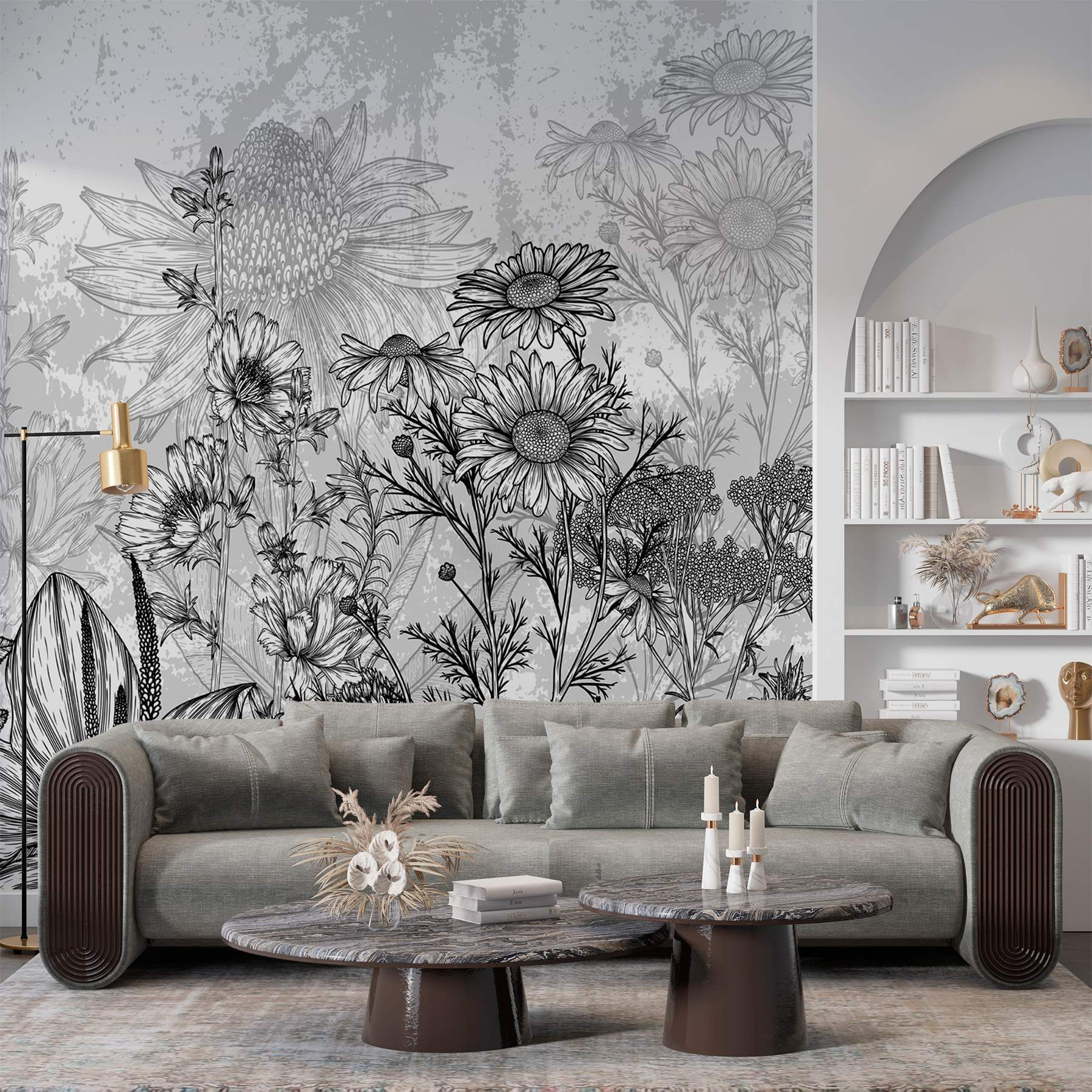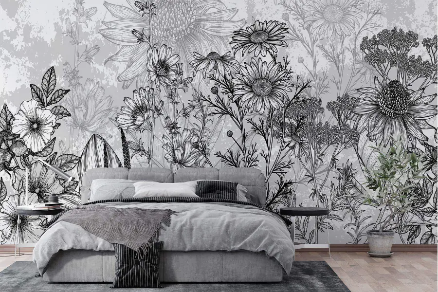 Alakítsa át a terét ezzel a lenyűgöző fekete-fehér falfestménnyel, amely bonyolult virágmintákat tartalmaz, és a természetet a beltérbe hozza – a bosszantó pollenek nélkül! Képzelje el, hogy minden reggel a százszorszépek és liliomok eleganciájára ébredve üdvözlik Önt. A finom vonalak és a gyönyörűen részletezett szirmok kifinomult bájt kölcsönöznek, tökéletes azok számára, akik értékelik a visszafogott szépséget. Olyan, mintha egy művészeti galéria lenne a nappalijában. Beszélgetésindító! Akár egy csendes sarkot dob fel, akár a kanapé mögötti merész kijelentést tesz, könnyedén feldob bármilyen teret. Tökéletes a természet és a művészet szerelmeseinek egyaránt!