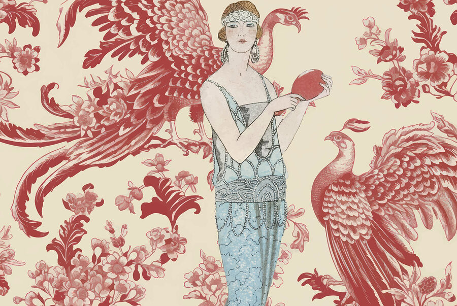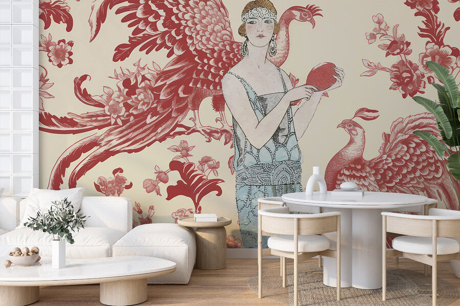 Alakítsa át a falakat beszélgetésindítóvá egy kék ruhás nőt ábrázoló freskóval, aki egy élénkpiros tárgyat ragad meg. Képzelje el, hogy ez a darab egy kis art-deco csillogást visz a nappaliba, és kerti partikról és vintage estélyekről ábrándozik. A színek elbűvölő összecsapása, a feltűnő pávákkal és buja virágokkal kíváncsiságra és bájra késztet. Ez nem csak dekoráció; ez egy hangulat. Ha belépsz a szobába, olyan érzés, mintha egy másik világba lépnél – ahol az elegancia találkozik a játékos szeszélyességgel. A barátok el lesznek varázsolva, és a tér? Teljesen felejthetetlen.