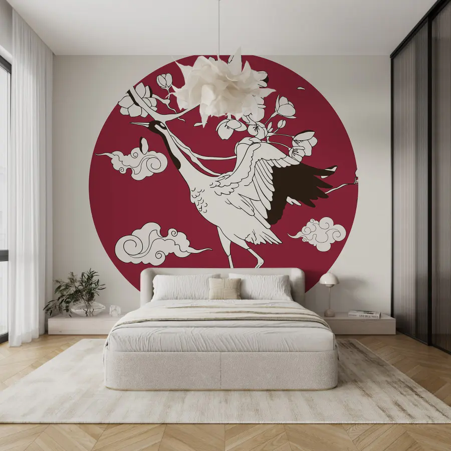 Képzelje el, hogy belép egy olyan szobába, ahol egy kecses madár táncol a falról. Ez a falfestmény, amelyen egy kedves daru ül elegánsan egy ágon, a természetről és a nyugalomról suttog meséket. Az élénk vörös háttér azonnal feldobja a teret, miközben melegséget és bájt sugároz. Képzelje el, amint teát szürcsölget, a nyugodt kép békés égboltról és szelíd szellőről álmodik. Ez nem csak dekoráció; olyan, mint egy kis menekülés a mindennapi nyüzsgés elől. A barátok bámulni fognak, talán irigykedve, de leginkább inspirálva. Egy kis varázslat, egy kis otthonosság.