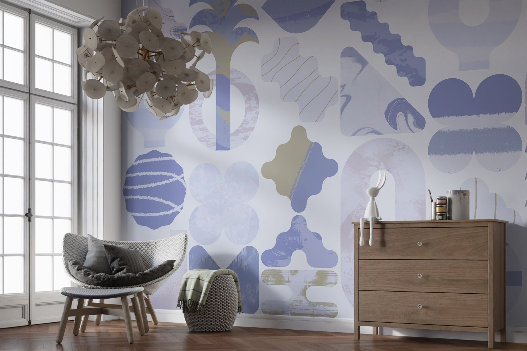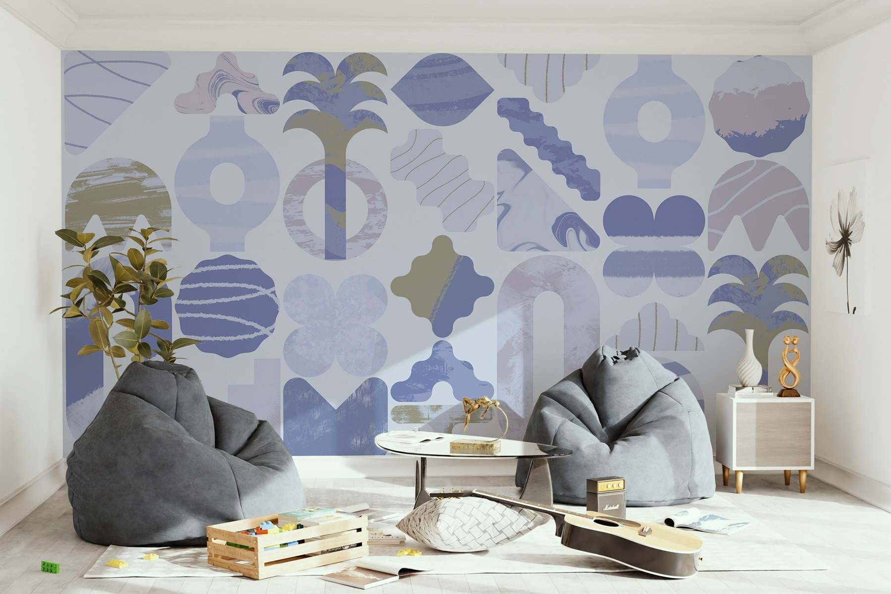 Alakítsa át terét ezzel a lenyűgöző kék-fehér falfestménnyel, amely tele van játékos formákkal, amelyek úgy táncolnak a felületen, mint egy szeszélyes kirakós. Képzelje el, hogy egy olyan szobába lép be, ahol a színek megnyugtatják a lelkét, ugyanakkor szikrát adnak a kreativitásának. Megvan ez a hangulat – üdítően modern, a lágy paletta klasszikus eleganciájára utaló bólintással. Tökéletes egy hangulatos olvasósarokba vagy egy élénk gyülekezőhelyre, ez a falfestmény absztrakt bája beszélgetésre invitál és személyiséget kölcsönöz. Olyan, mintha lenne egy olyan műalkotás, amely egyszerre háttér és merész kijelentés. Ki ne szeretné ezt a stílusos remekművet bámulni, miközben a reggeli kávét kortyolgatja vagy vendégül látja barátait? Merüljön el az inspiráció világában!