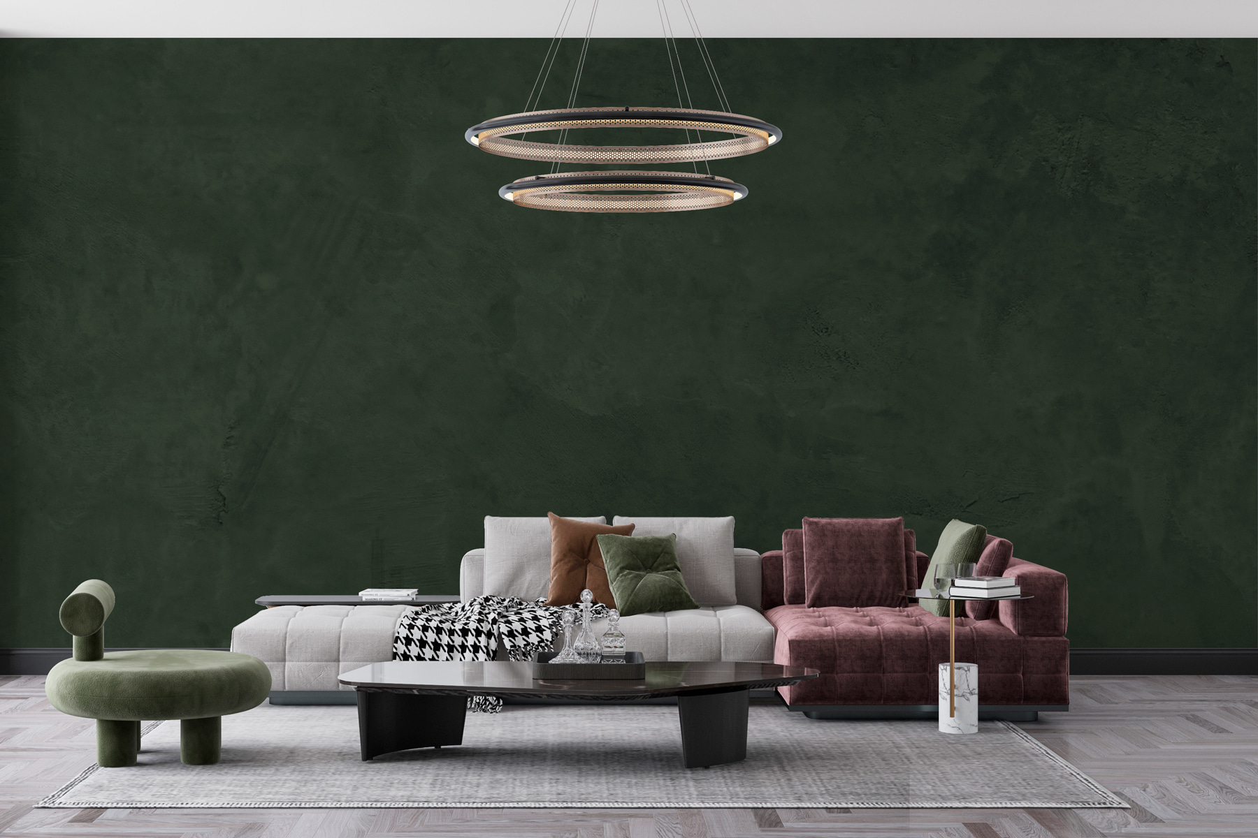 Bármelyik helyiséget hangulatossá varázsolhatja ezzel a feltűnő sötétzöld falfestménnyel. Durva élei földies bájt kölcsönöznek neki, így inkább egy rejtett erdei zugnak tűnik, mint egyszerű falnak. Képzelje el, ahogy egy csésze kávéval összegömbölyödik, és ez a meleg érzés úgy tekeredik köré, mint egy kedvenc takaró. Tökéletes a nappali nyugodt hangulatának megteremtéséhez, vagy a hálószoba természetességével való feldobásához. Ráadásul ki ne szeretné a drámaiságot anélkül, hogy túlzásba vinné? Legyen ez a falfestmény az emlékek, a nevetés és talán még néhány spontán táncos buli háttere!