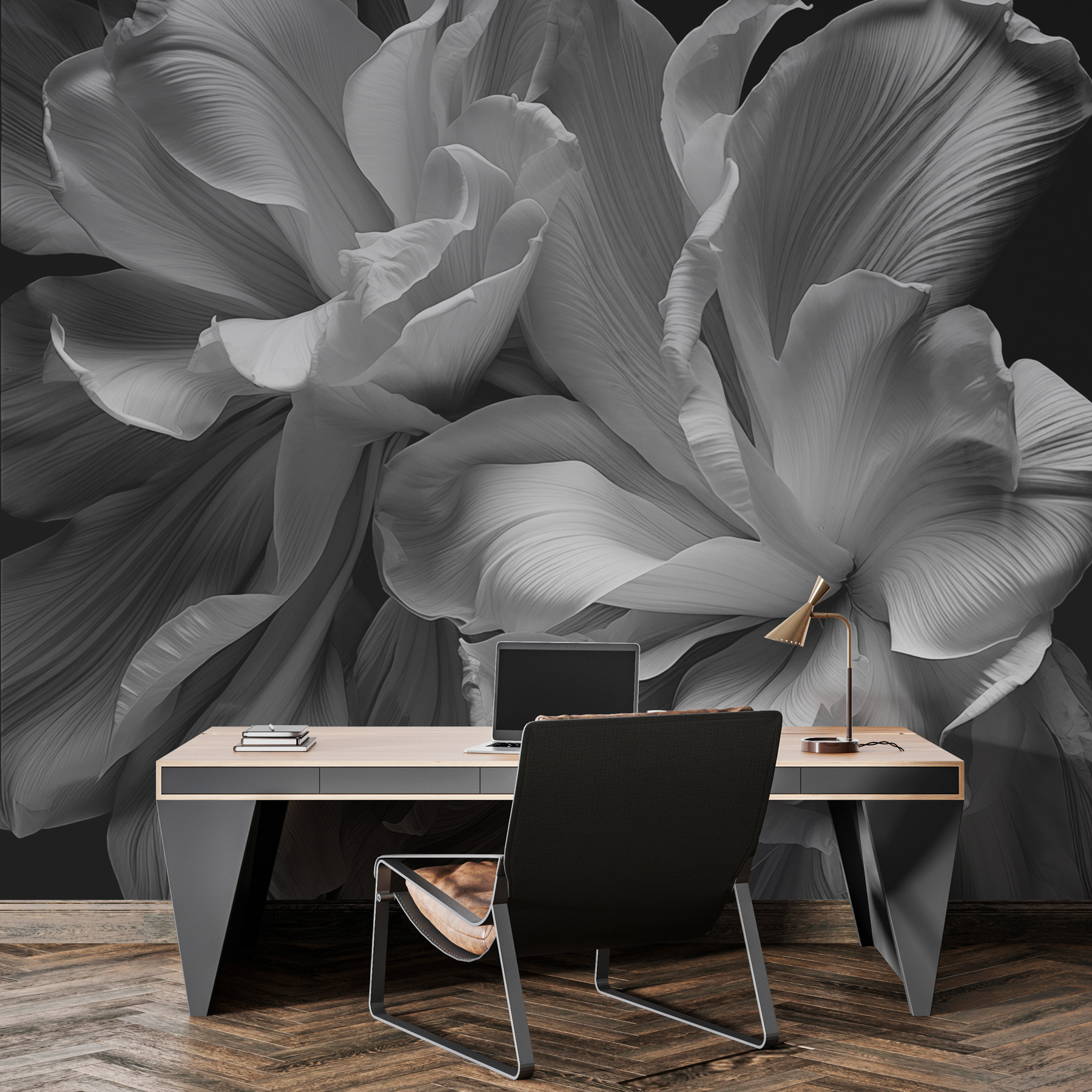 Az “Elegáns virágok monokróm kontrasztban” segítségével egy unalmas falat lélegzetelállító mesterművé varázsolhatsz. Ez a lenyűgöző falfestmény, amely finom bazsarózsákat és rózsákat ábrázol varázslatos szürkeárnyalatban, kifinomultságot kölcsönöz bármely helyiségnek. Képzelje el, ahogy belép a helyiségébe, és szeszélyes szirmok fogadják, amelyek mintha táncolnának a falon – hát nem álomszép? A kontraszt tökéletes ahhoz, hogy merész kijelentést tegyen anélkül, hogy túlterhelné az érzékeket. Legyen szó egy hangulatos olvasósarokról vagy egy élénk étkezőről, ez a falfestmény melegséget, eleganciát és egy csipetnyi virágmágiát sugároz. Olyan, mintha egy kert lenne a házban, az öntözőkanna nélkül!