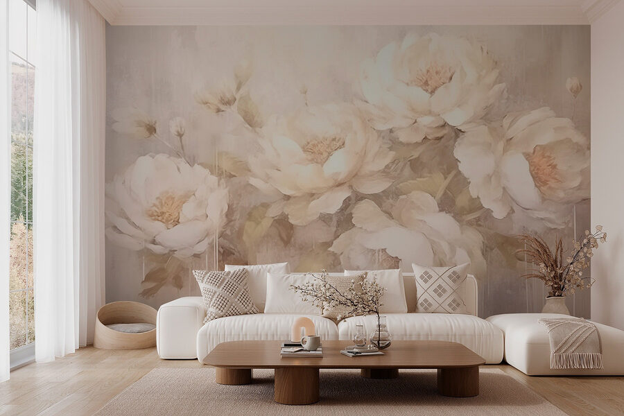 Alakítson át bármilyen helyiséget ezzel a gyönyörű, fehér virágokból készült falfestménnyel. Képzelje el ezt: egy hangulatos helyiség, ahol ezek a lágy, virágzó bazsarózsák mintha táncolnának a falon, friss levegőt hozva az otthonába. Ezek nem csak virágok, hanem egy gyengéd ölelés a szemnek. Képzelje el, hogy teát szürcsölgetve nézi a finom ecsetvonásokat, és egyszerre érzi magát nyugodtnak és inspiráltnak. Olyan, mintha a falaidnak lenne egy titkos kertje, tele nyugalommal és bájjal. Ez a falfestmény tökéletes azok számára, akik egy kis természetre vágynak a belső térben, olyan, mintha a tavaszt hívná meg a mindennapjaiba.