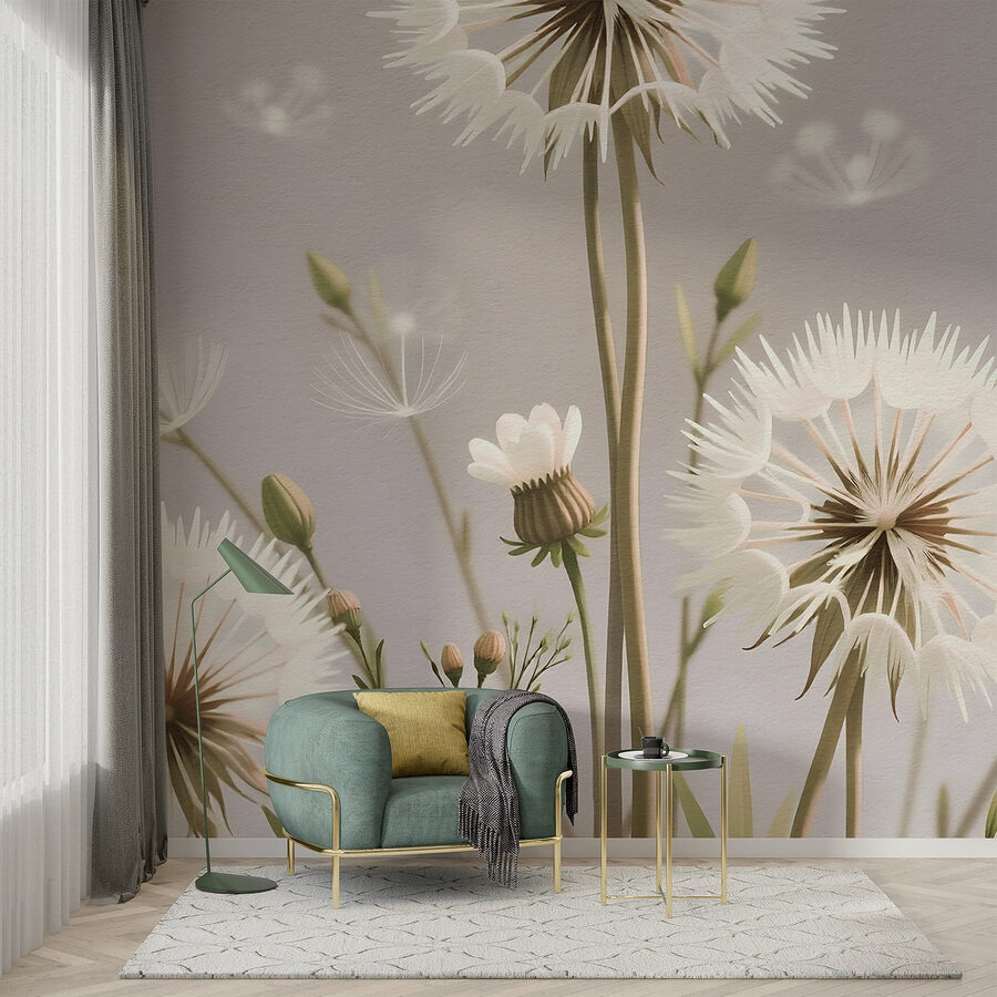 Alakítsa át terét a “Delicate Blooms in Soft Palette” falfestménnyel. Ez a gyönyörű dizájn egy kis természetet hoz a belső térbe, gyönyörű pitypangokkal és szelíd virágokkal. Képzelje el, hogy felébred, és ez a nyugtató műalkotás fogadja – olyan, mint egy lágy suttogás a kertből!