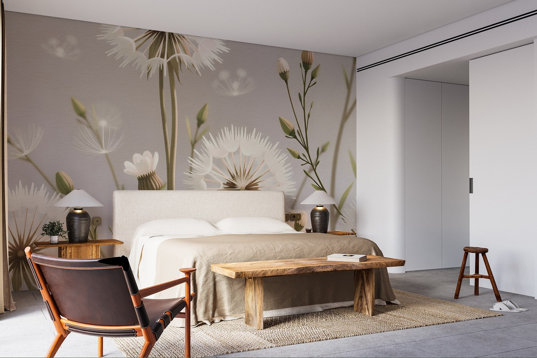 Alakítsa át terét a “Delicate Blooms in Soft Palette” falfestménnyel. Ez a gyönyörű dizájn egy kis természetet hoz a belső térbe, gyönyörű pitypangokkal és szelíd virágokkal. Képzelje el, hogy felébred, és ez a nyugtató műalkotás fogadja – olyan, mint egy lágy suttogás a kertből!