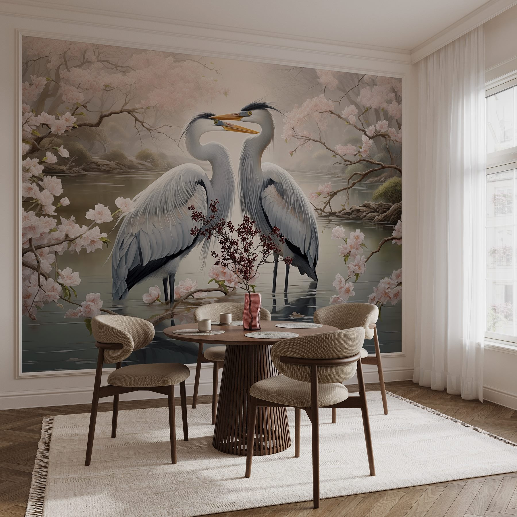 Alakítsa át terét ezzel a varázslatos falfestménnyel, amelyen egy pár kecses fehér madár áll a nyugodt vízben, finom rózsaszín virágoktól körülvéve. Olyan, mintha egy nyugodt japánkert egy darabkája lenne otthonodban! Képzelje el, ahogy teát kortyolgat, miközben a napfény táncol a víz felszínén, játékos tükröződéseket vetítve. A lágy akvarell tónusok hívogató, hangulatos hangulatot teremtenek – tökéletes egy olvasósarokba vagy egy békés visszavonult helyiségbe. Ez egy kedves emlékeztető a természet szépségére, és őszintén, ki ne szeretne egy kis tollas romantikát a falán? Ez a világos, szelíd és teljesen elbűvölő falfestmény biztosan ellopja a show-t – akárcsak a madarak!