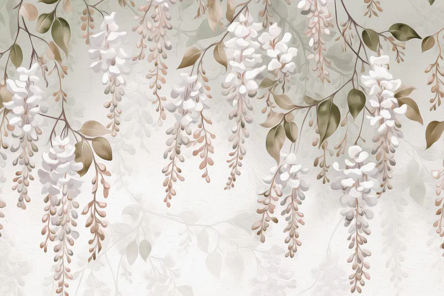 Alakítsa át terét a “Delicate Blossoms in Soft Hues” (Finom virágok lágy árnyalatokban) című dekorációval, ahol a természet a legédesebb módon találkozik a művészettel. Képzelje el, hogy egy olyan szobába lép be, amely olyan, mint egy szelíd tavaszi nap, hála ezeknek a nyugtató falfestményeknek. A lágy levendula és a tompa zöldek nyugodt hangulatot teremtenek, amely tökéletes a hosszú nap utáni kikapcsolódáshoz. Képzelje el, ahogy teát szürcsölgetve sütkérezik a kaszkádszerűen hullámzó virágok szépségében, amelyek szinte ringatózni látszanak a szellővel. Olyan, mintha egy kis kertet hozna be a házba – a bosszantó pollenek nélkül! Legyen szó egy hangulatos olvasósarokról vagy egy elegáns nappaliról, ez a falfestmény minden sarokba bájt és nyugalmat varázsol. Nem lenne itt az ideje, hogy a falakat átalakítsd, amit megérdemelnek?