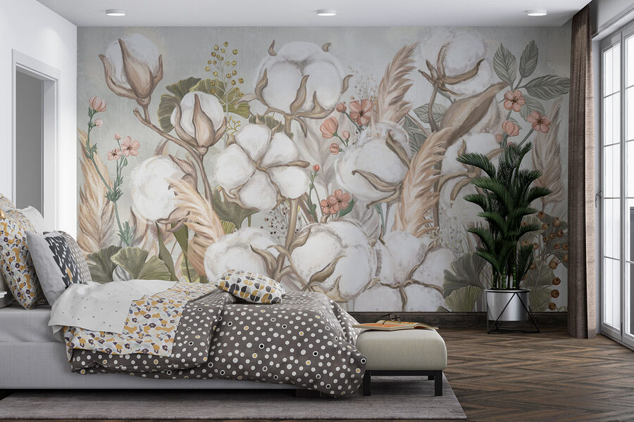 Alakítsa át falait az álomszép “Fluffy Cotton Blooms in Soft Hues” (Puha pamutvirágok lágy árnyalatokban) falfestménnyel. Képzeld el, hogy egy nyugodt kertbe lépsz, ahol a pamutvirágok lágysága édes semmiségeket suttog. Ez a dizájn szelíd emlékeztető a természet szépségére, tökéletes a hangulatos hangulat megteremtéséhez. A finom zöldek és a meleg, semleges színek egész évben tavaszias érzést keltenek – ki ne szeretné ezt? Képzelje el egy gyerekszobában, vagy esetleg egy pihentető olvasósarokban. Hát nem érzed szinte a friss levegő illatát? Ez a falfestmény nem csak díszít, hanem megállásra, lélegzetvételre és a körülötted lévő szépség élvezésére hív. Hidd el, még a falad is hálás lesz érte!