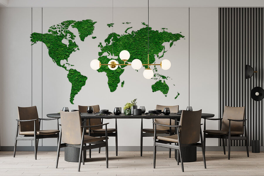 Alakítsa át terét ezzel a lenyűgöző falfestménnyel, amely a világ térképét ábrázolja, és amely teljes egészében buja zöld növényekből áll. Olyan, mintha a természet egy darabját hozná be a házba – öntözés nélkül! Képzelje el, hogy egy olyan szobában érzi jól magát, ahol a kontinensek élénk zöld növényekből vannak megalkotva. Kíváncsiságot és beszélgetést vált ki, tökéletes a “hol is van az a hely?” pillanatokhoz. Ráadásul olyan nyugtató hangulatot áraszt, mint egy mély lélegzetvételnyi friss levegő. Akár a nappaliban, akár az irodában, ez a falfestmény garantáltan ösztönözni fogja a vándorlási vágyat. Ki gondolta volna, hogy a dekoráció ennyire kalandos érzés lehet?