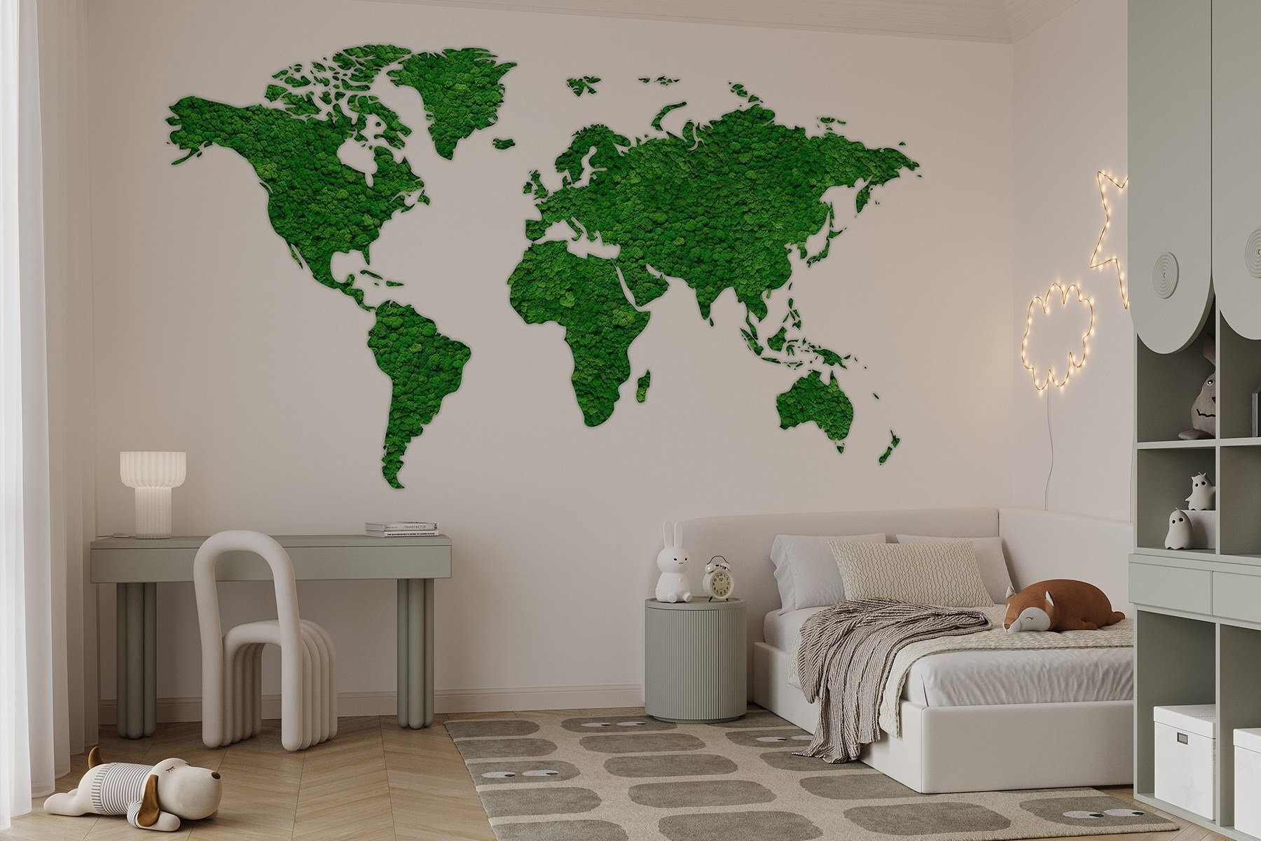 Alakítsa át terét ezzel a lenyűgöző falfestménnyel, amely a világ térképét ábrázolja, és amely teljes egészében buja zöld növényekből áll. Olyan, mintha a természet egy darabját hozná be a házba – öntözés nélkül! Képzelje el, hogy egy olyan szobában érzi jól magát, ahol a kontinensek élénk zöld növényekből vannak megalkotva. Kíváncsiságot és beszélgetést vált ki, tökéletes a “hol is van az a hely?” pillanatokhoz. Ráadásul olyan nyugtató hangulatot áraszt, mint egy mély lélegzetvételnyi friss levegő. Akár a nappaliban, akár az irodában, ez a falfestmény garantáltan ösztönözni fogja a vándorlási vágyat. Ki gondolta volna, hogy a dekoráció ennyire kalandos érzés lehet?
