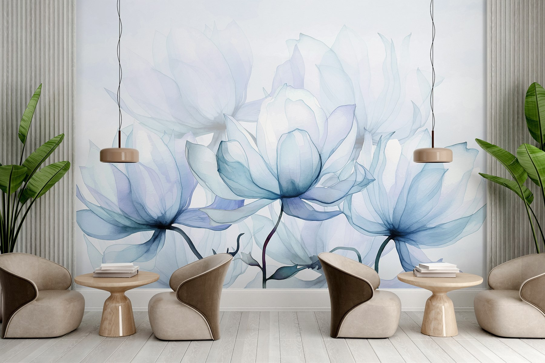 Merüljön el egy nyugodt menekülésben a “Lágy szirmok nyugodt tónusokban” falfestmény segítségével. Képzelje el, hogy egy álomszép kertbe lép, ahol a finom, akvarellszínű virágok lágyan suttogják a nyugodt hangulatot. A lágy kékek és fehérek olyan kecsesen olvadnak össze, mintha a természet baráti ölelése lenne. Ez a falfestmény nem csak dekoráció; ez egy meghívás a lazításra és a nyugalomra. Helyezze el egy hangulatos olvasósarokban vagy egy nyugodt hálószobában, és a hétköznapi falakat nyugtató menedékké varázsolja. Tökéletes azokon a napokon, amikor az élet egy kicsit túl hektikusnak tűnik – hagyja, hogy a lágy szirmok arra emlékeztessék, hogy lélegezzen és engedje el magát.