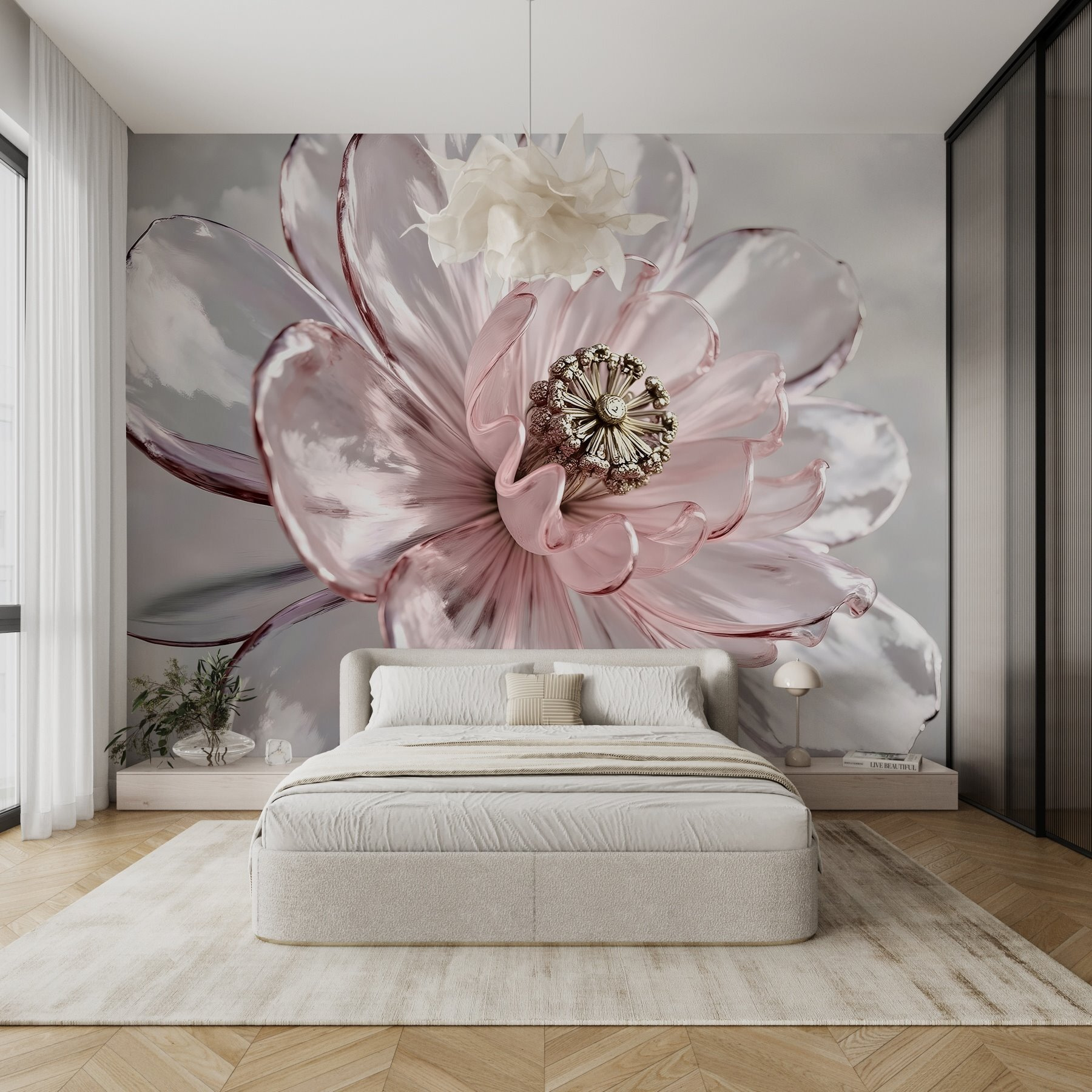 Bármelyik szobát alakítsd át botanikai paradicsommá ezzel a lenyűgöző falfestménnyel: “A finom szirmok körülölelik a bonyolult szépséget”. Képzelje el, ahogy belép a helyiségébe, és buja bazsarózsák és rózsák fogadják, amelyek mintha a természet titkait suttognák. A lágy, pirosas árnyalatok olyanok, mint egy édes reggeli napfelkelte, melegséget és bájt árasztva. Legyen szó a hangulatos olvasósarokról vagy egy vibráló étkezőhelyiségről, ez a falfestmény nyugodt hátteret teremt, amely megnyugtatja a lelket. Még az is lehet, hogy álmodozáson kapja magát, miközben a bonyolult részleteket bámulja – olyan, mintha a kertjét behozná a házba. Tökéletes a virágok szerelmeseinek és a természet szerelmeseinek egyaránt, ez a falfestmény egy elbűvölő menekülés, amely szikrázó személyiséggel tündököl.