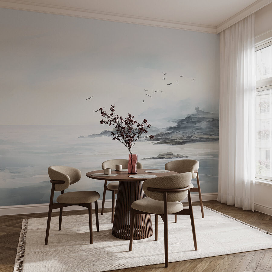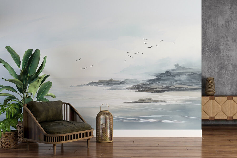 Alakítson át bármilyen helyiséget ezzel a varázslatos falfestménnyel, a “Sziklás tengerpart felett repülő madarakkal”. Képzeld el, hogy az óceán lágy árnyalataira és az égen vitorlázó álmodozó madarakra ébredsz. Olyan ez, mint egy mini vakáció a faladon! A lágy színek nyugtató hangulatot árasztanak, amely tökéletes egy nyugodt élettérbe vagy egy derűs hálószobába.